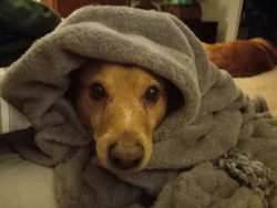 My boo baby. He is 11 years old and hates to be cold or dirty. He's a chihuahua terrier mix at 42 pounds of love.