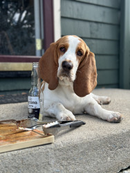 Booger loves lounging on the couch, following your every footstep, and being the best grill master around.