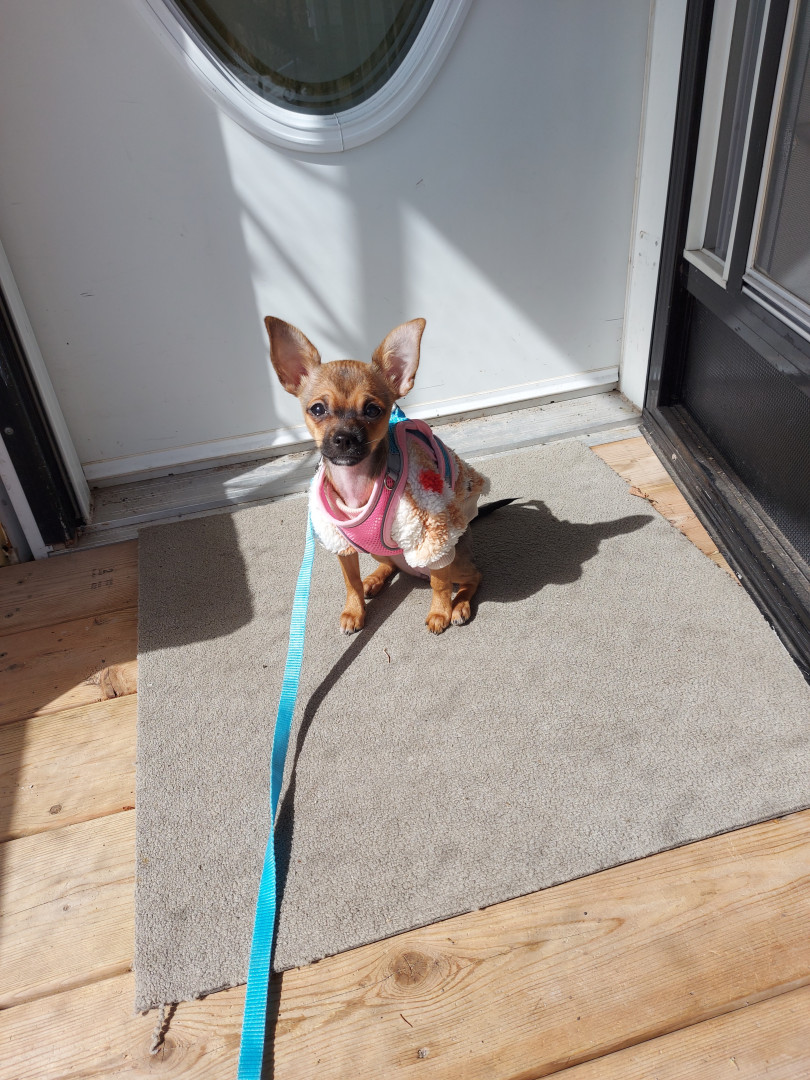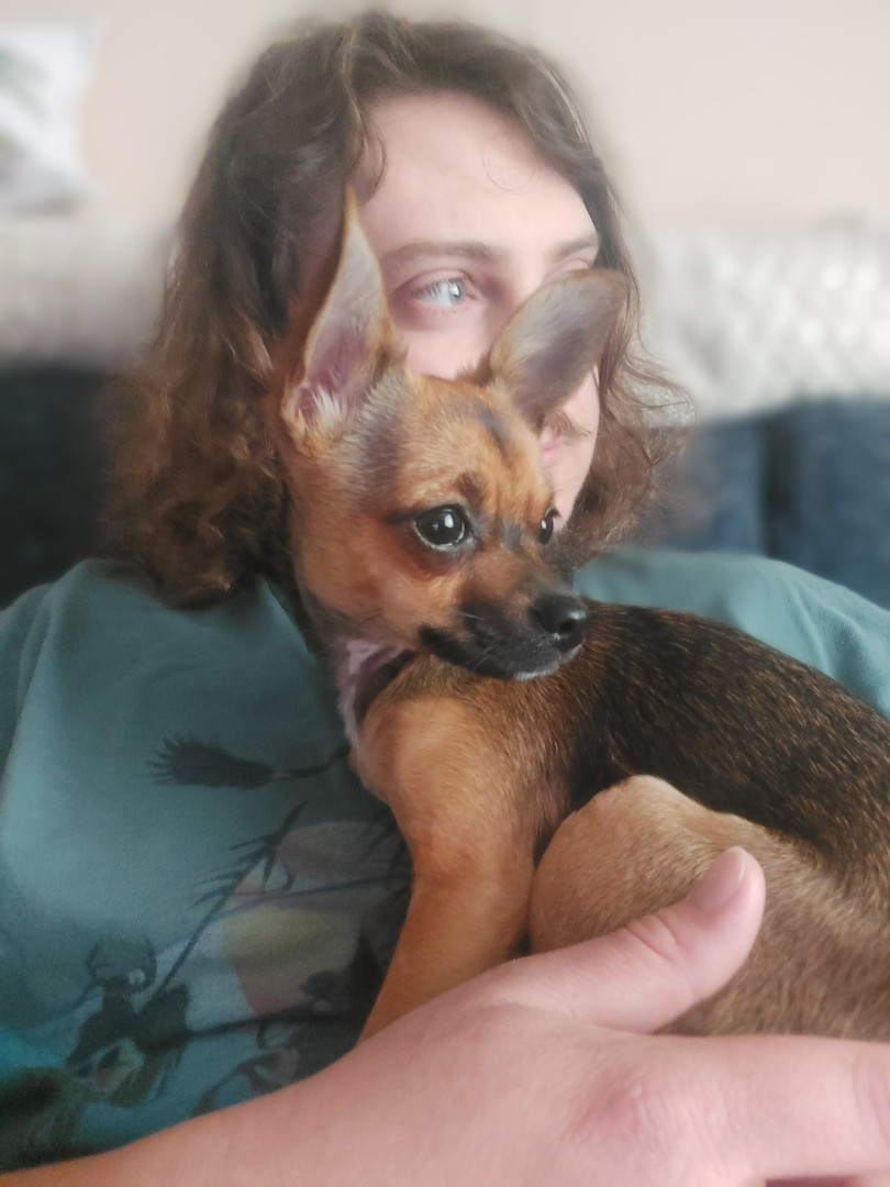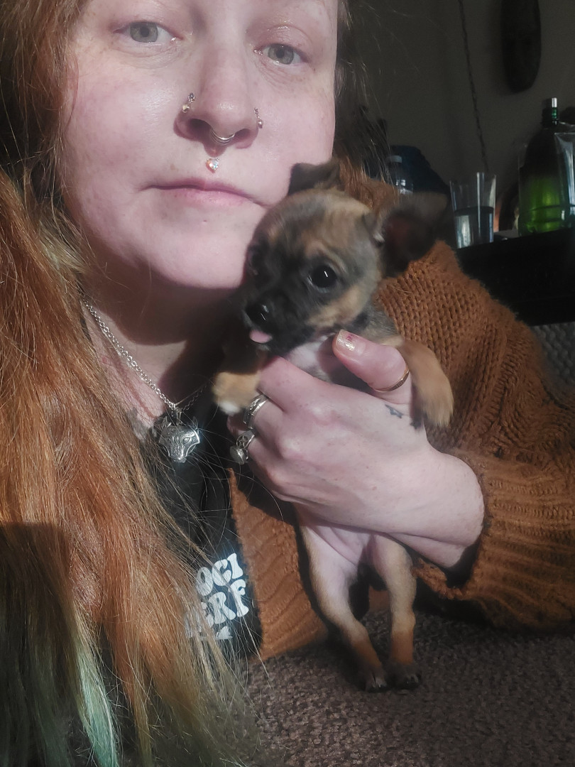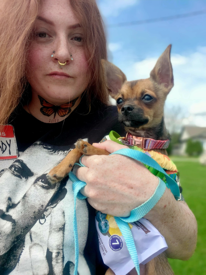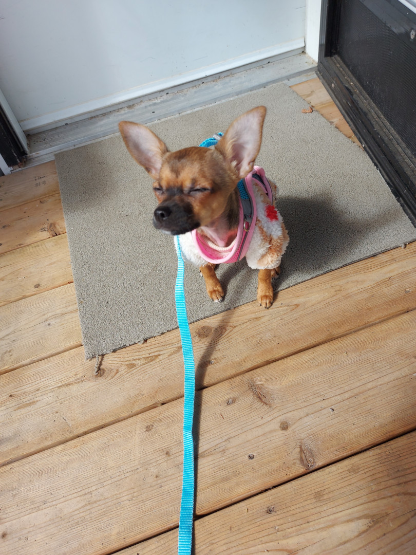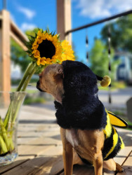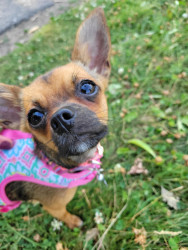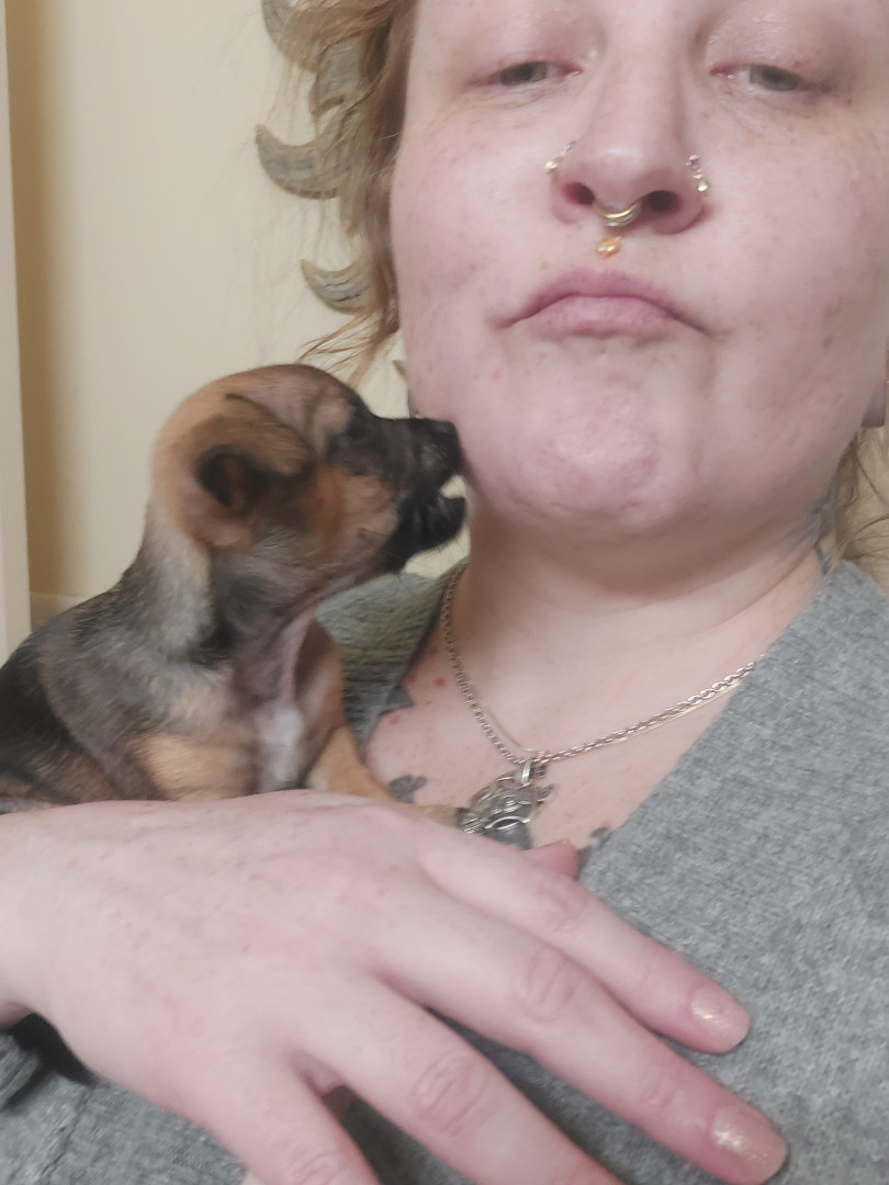 Boone’s most unique quality is a mix of physical charm and quirky personality: she has the delicate, almost magical look of a baby fawn, with "Ariana Grande" level expressive eyebrows that practically tell a story all on their own.. On top of that, she has this hilarious, endearing habit of pretending her back legs don’t work, dragging herself “army style” across the floor especially when she’s excited or causing mayhem--turning even ordinary moments into a full-on performance.