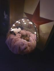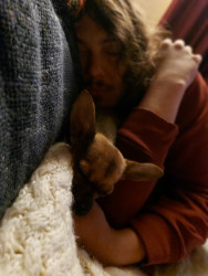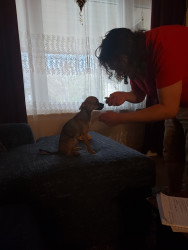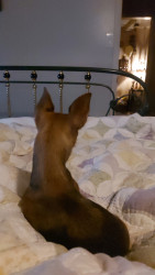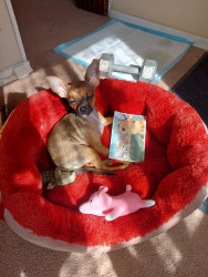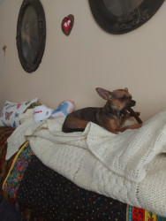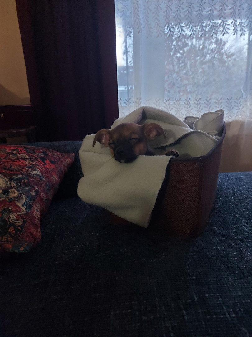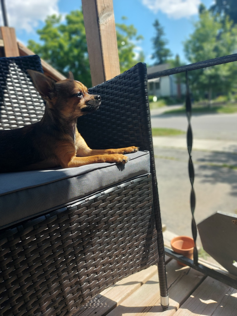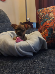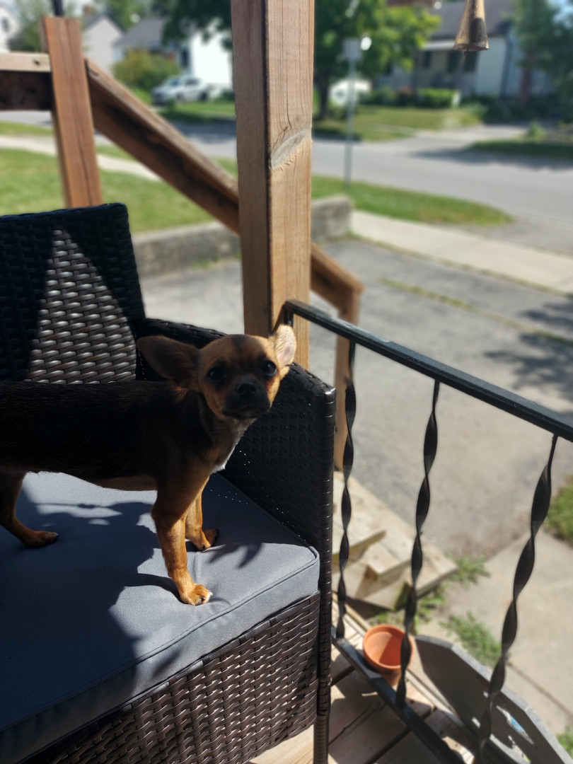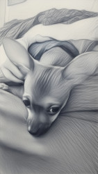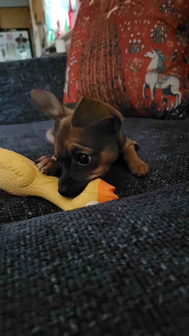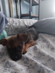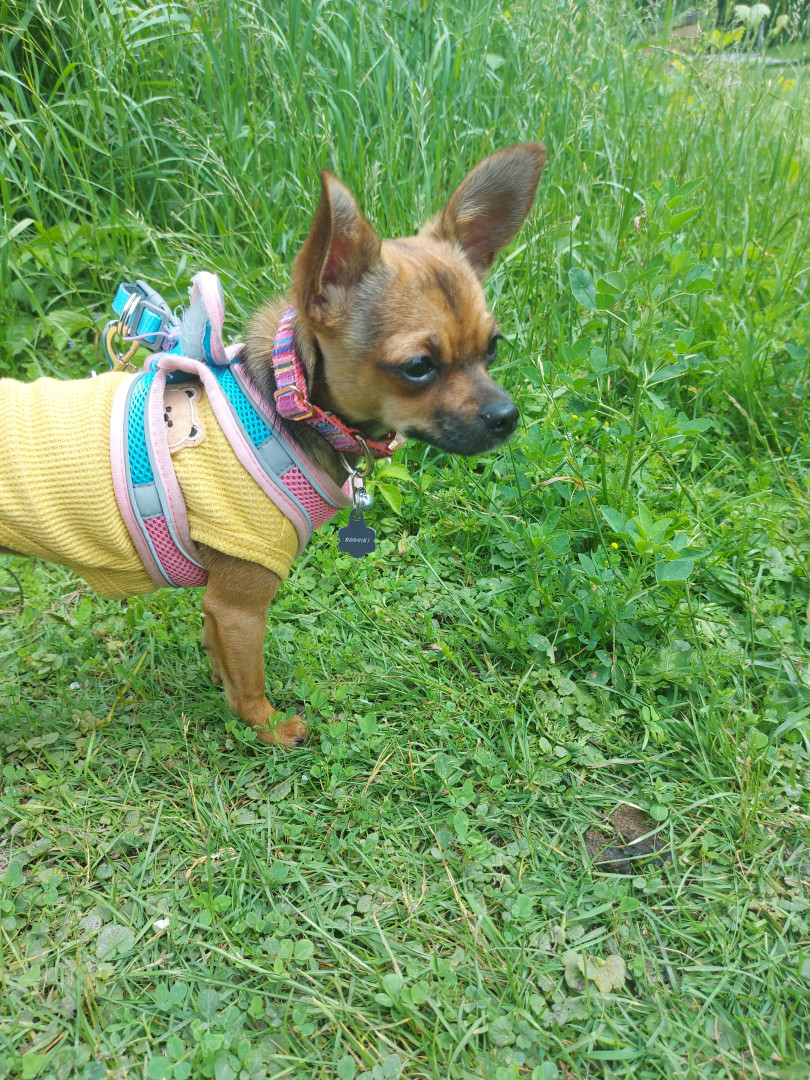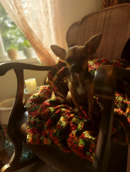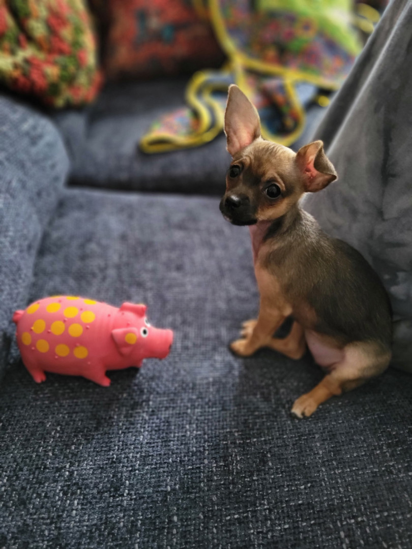 Boone’s most unique quality is a mix of physical charm and quirky personality: she has the delicate, almost magical look of a baby fawn, with "Ariana Grande" level expressive eyebrows that practically tell a story all on their own.. On top of that, she has this hilarious, endearing habit of pretending her back legs don’t work, dragging herself “army style” across the floor especially when she’s excited or causing mayhem--turning even ordinary moments into a full-on performance.