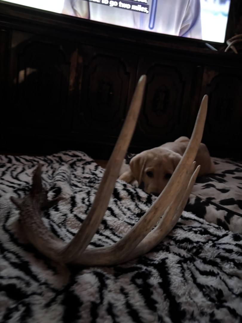Boone is now 7 months and he’s a great dog! He’s a yellow Labrador!He loves to shed hunt!