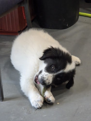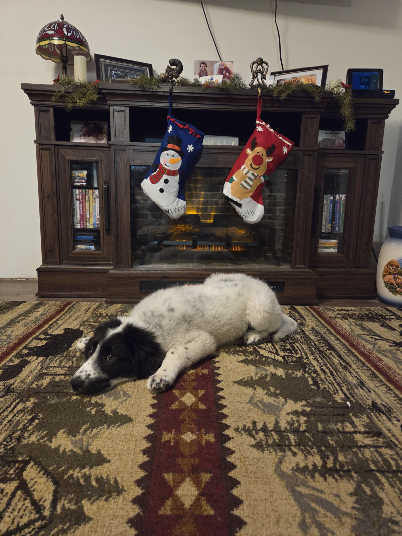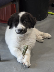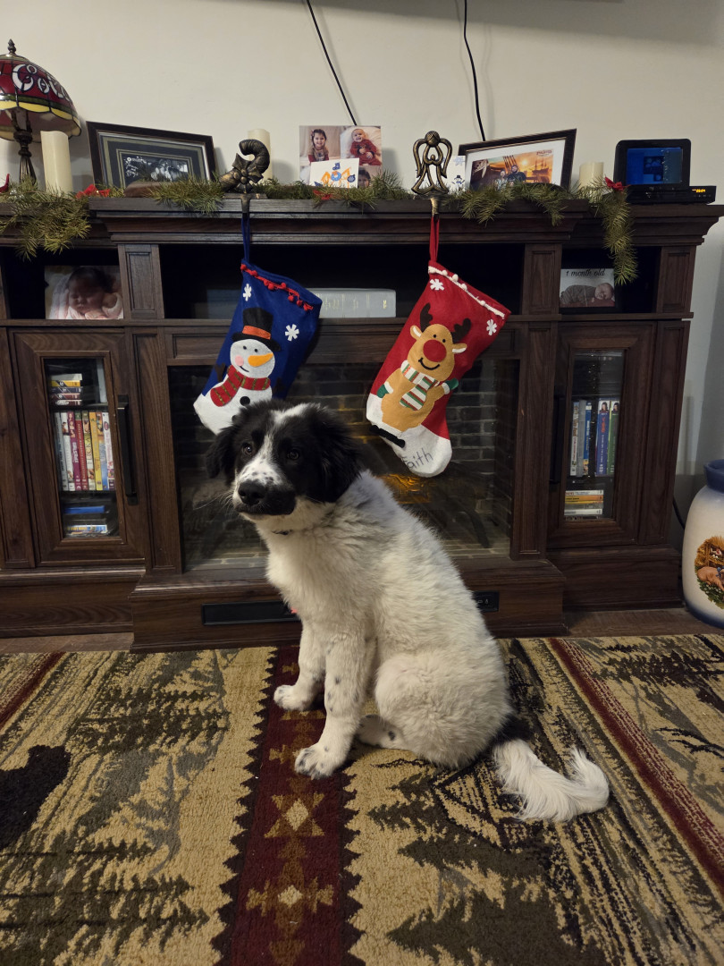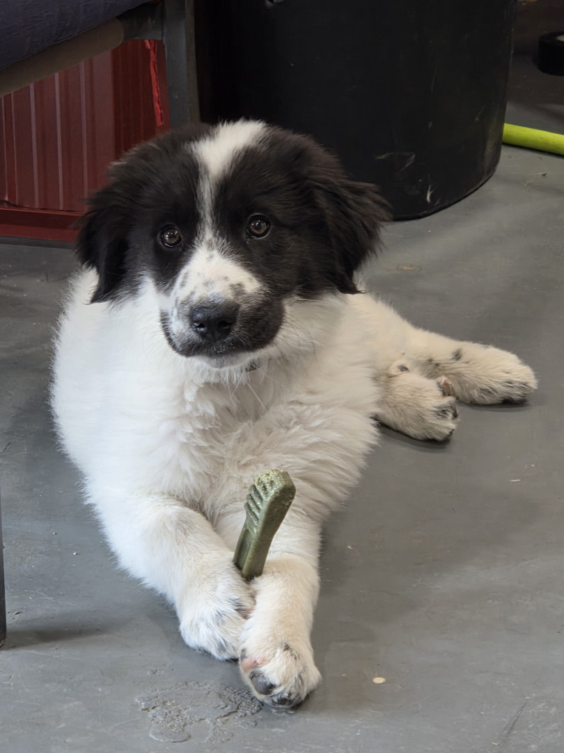 He is a 12 week old Great Pyrenees/Border Collie mix , he was a surprise to me from my sister after just losing my 4 yr old GSD tragically.
