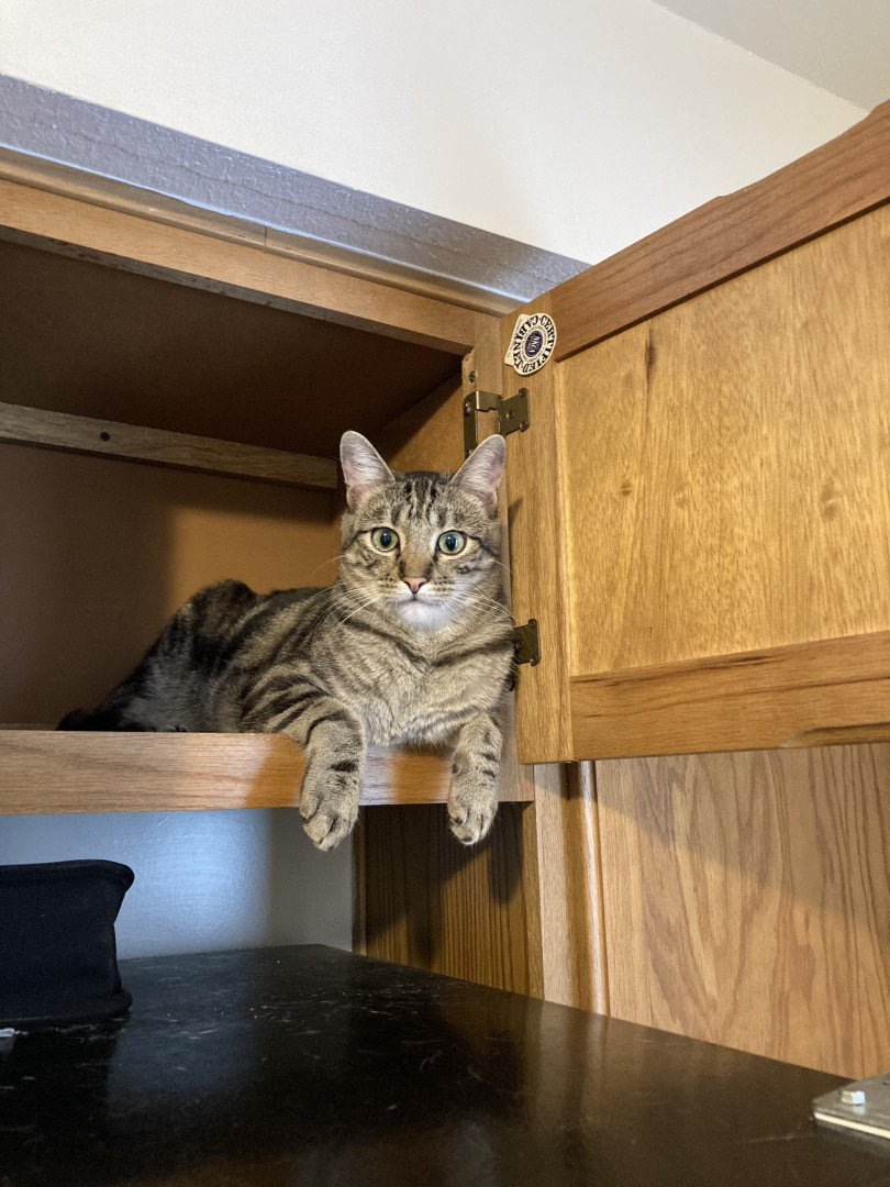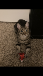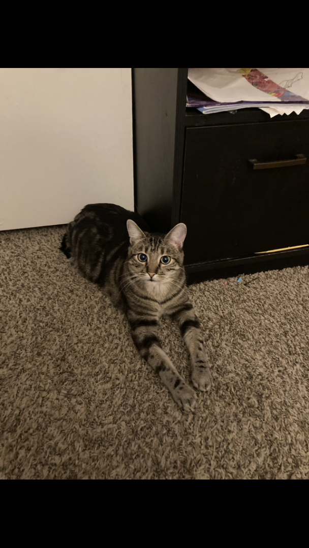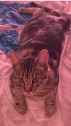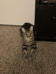 I think he should be the top’s favorite because his eyes and his little face are just so cute and so unique he’s the most precious cat ever and he loves to take pictures as you can tell in the picture that I sent in to be in the contest.
