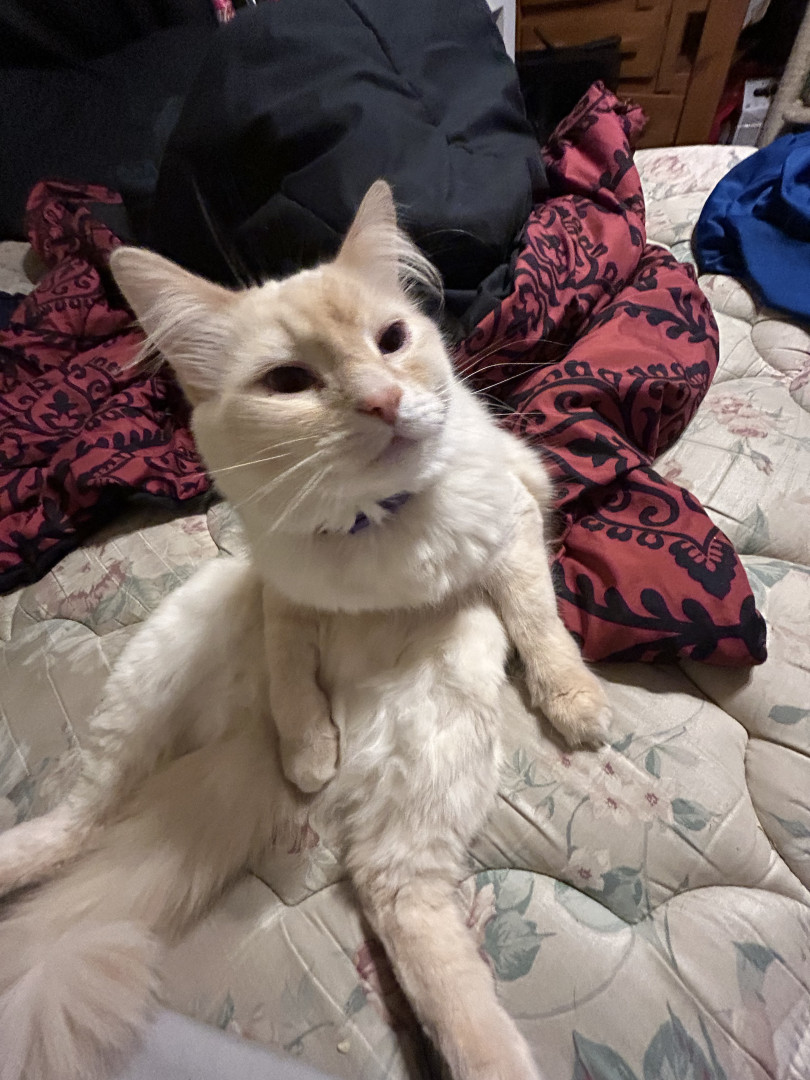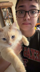 Boots is the kindest, sweetest, and most loving cat ever hes always friendly to my friends and he has the prettiest blue eyes