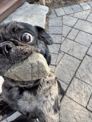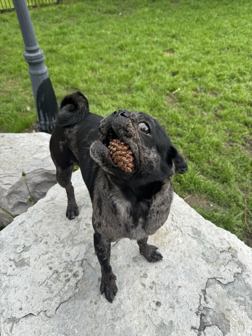 Her most unique talent is rock collecting. Not chewing, not burying—curating. Every day she carefully selects a very important “rock of the day” and proudly carries it around like a prized possession. No two rocks are the same, and all of them are extremely special. She doesn’t know why she does it, but she takes her role as a professional rock hoarder very seriously. 🪨🐶