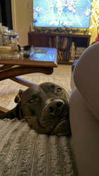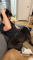 He’s my best friend and has gotten me through some tough times. He’s a gentle giant who just wants to cuddle. HUGE personality.
