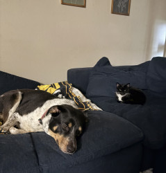 Bree is a 5-year-old Shepherd Cur mix. She is super smart, funny, and protective of her family! Her favorite things are naps and playing.