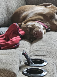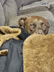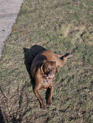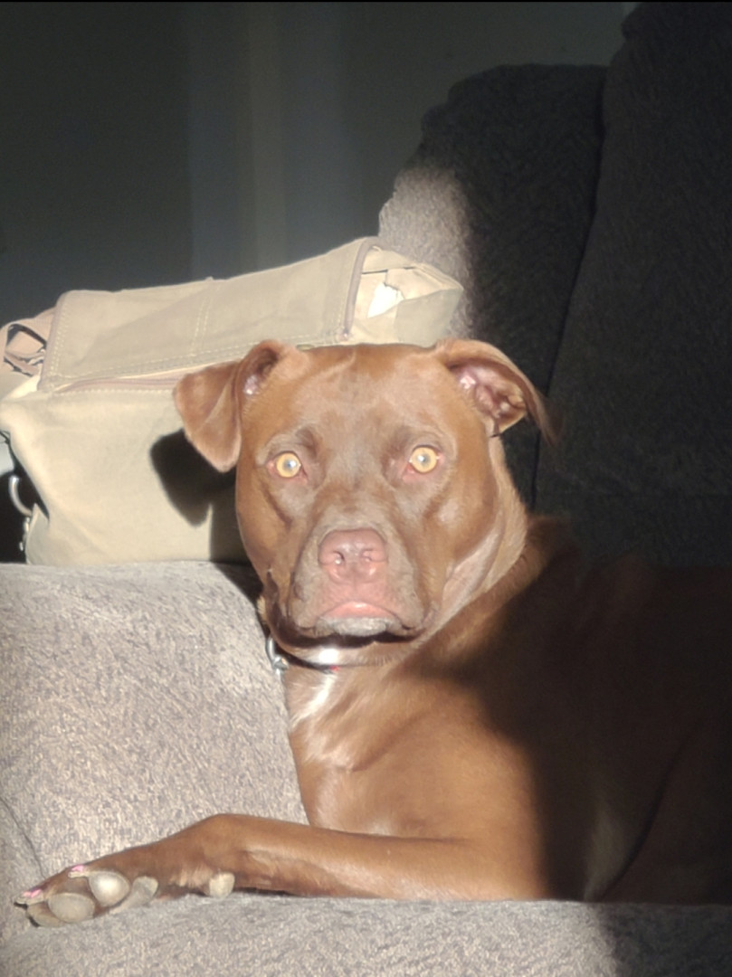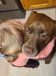 Brielle is a Chocolate lab/Red nose pit. She is a rescue and the sweetest girl. She loves walks and her doggie brother.