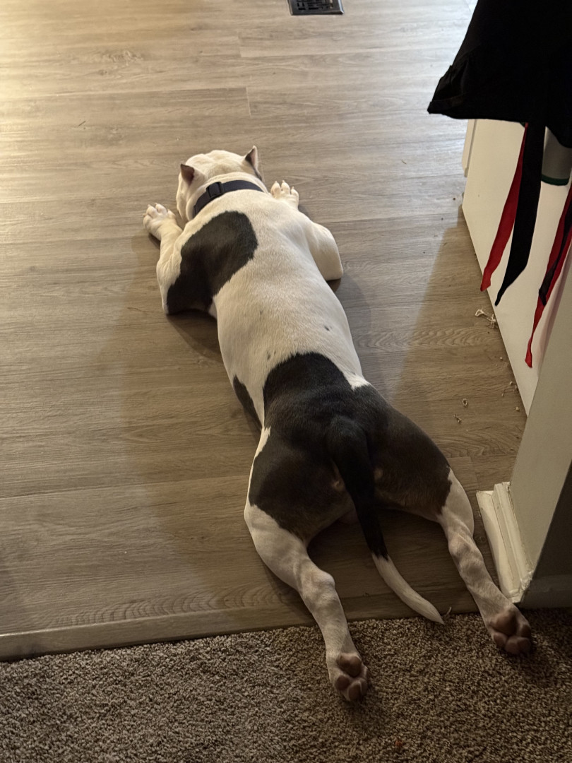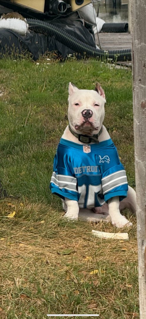 Bruce is a champion pup, he’s a Pieballed tri-color pocket bully with great structure and an even more amazing personality! Akc registered