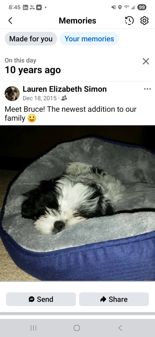 Bruce is a 10yr old Shih Tzu that still acts like a puppy. He is my baby