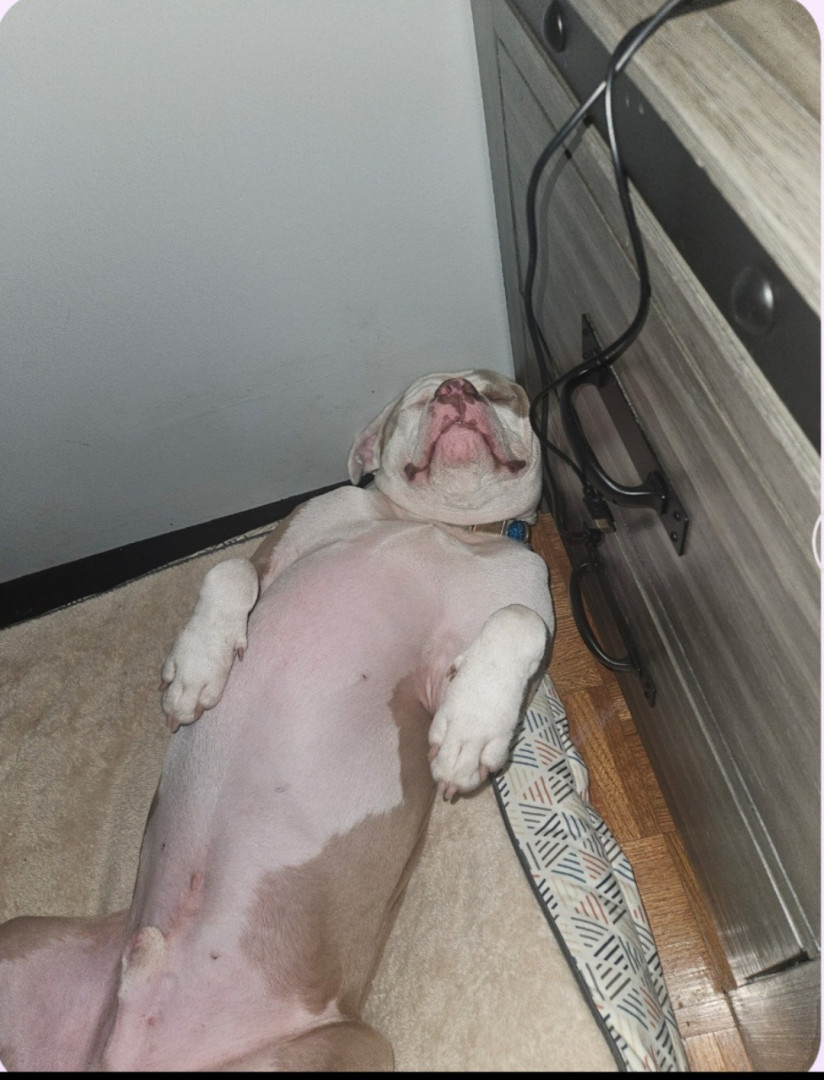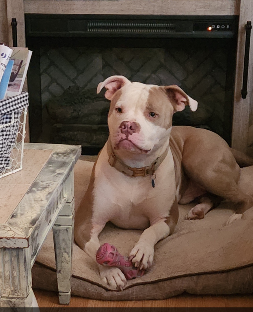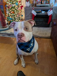 Bruno is a Pitbull with the sweetest kisses and hugs.He loves to snuggle . He plays balloon toss with his dad. He loves to go for walks .