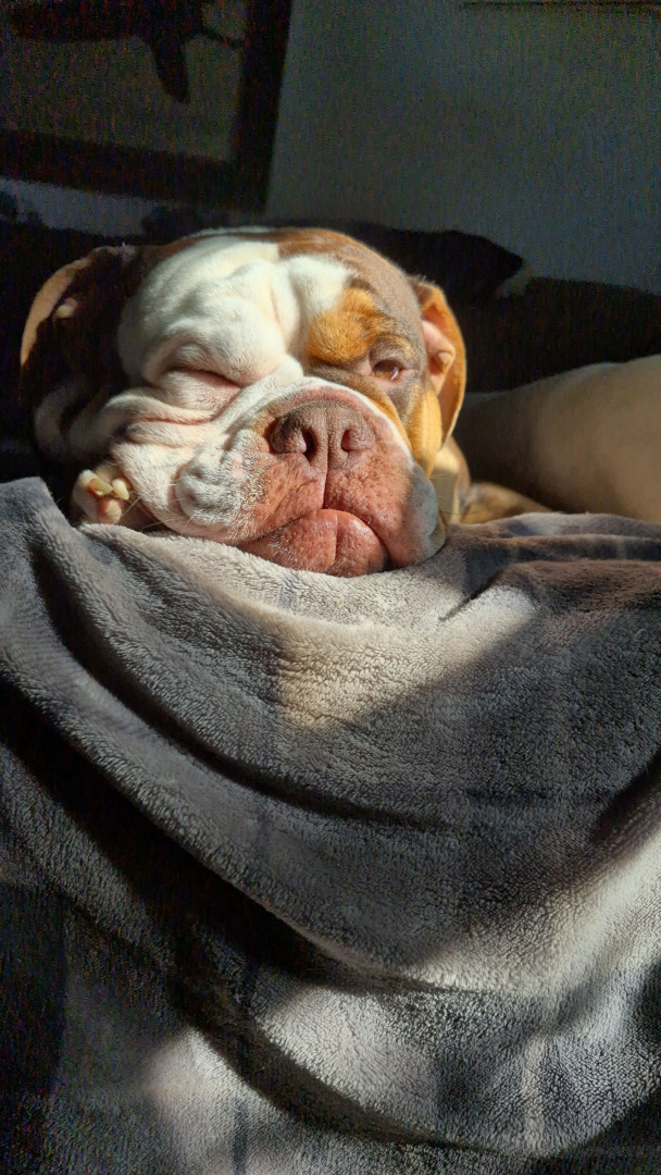 Bruno is an olde English bulldog. He loves beach walks, being mischievous and ending the day being a couch potatoe