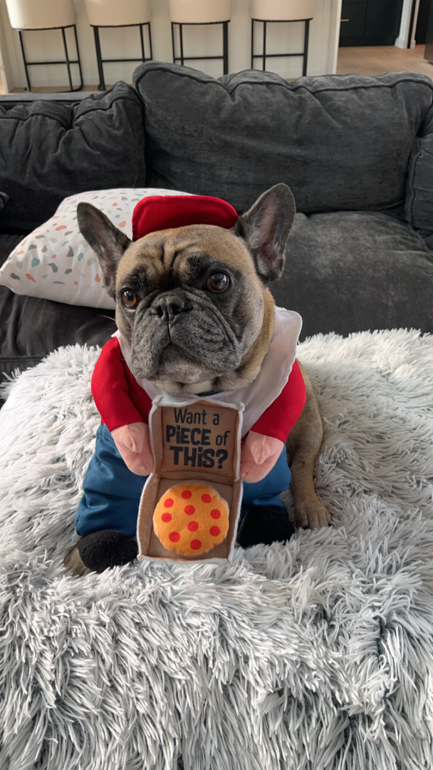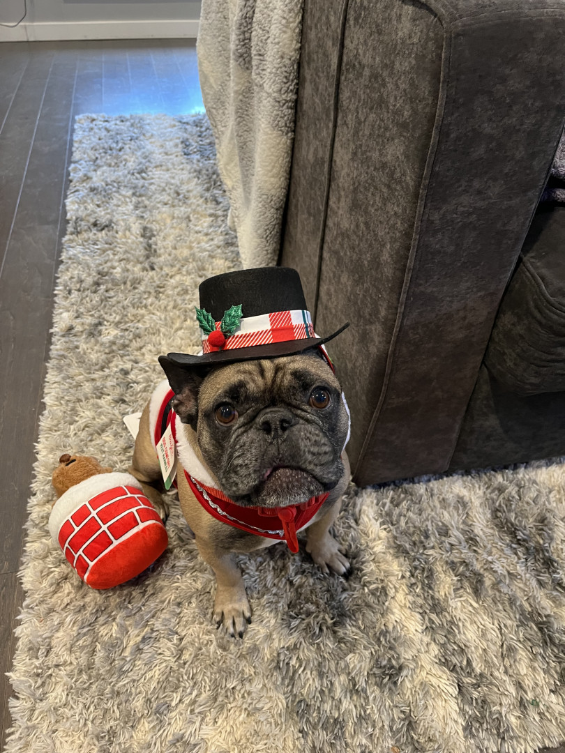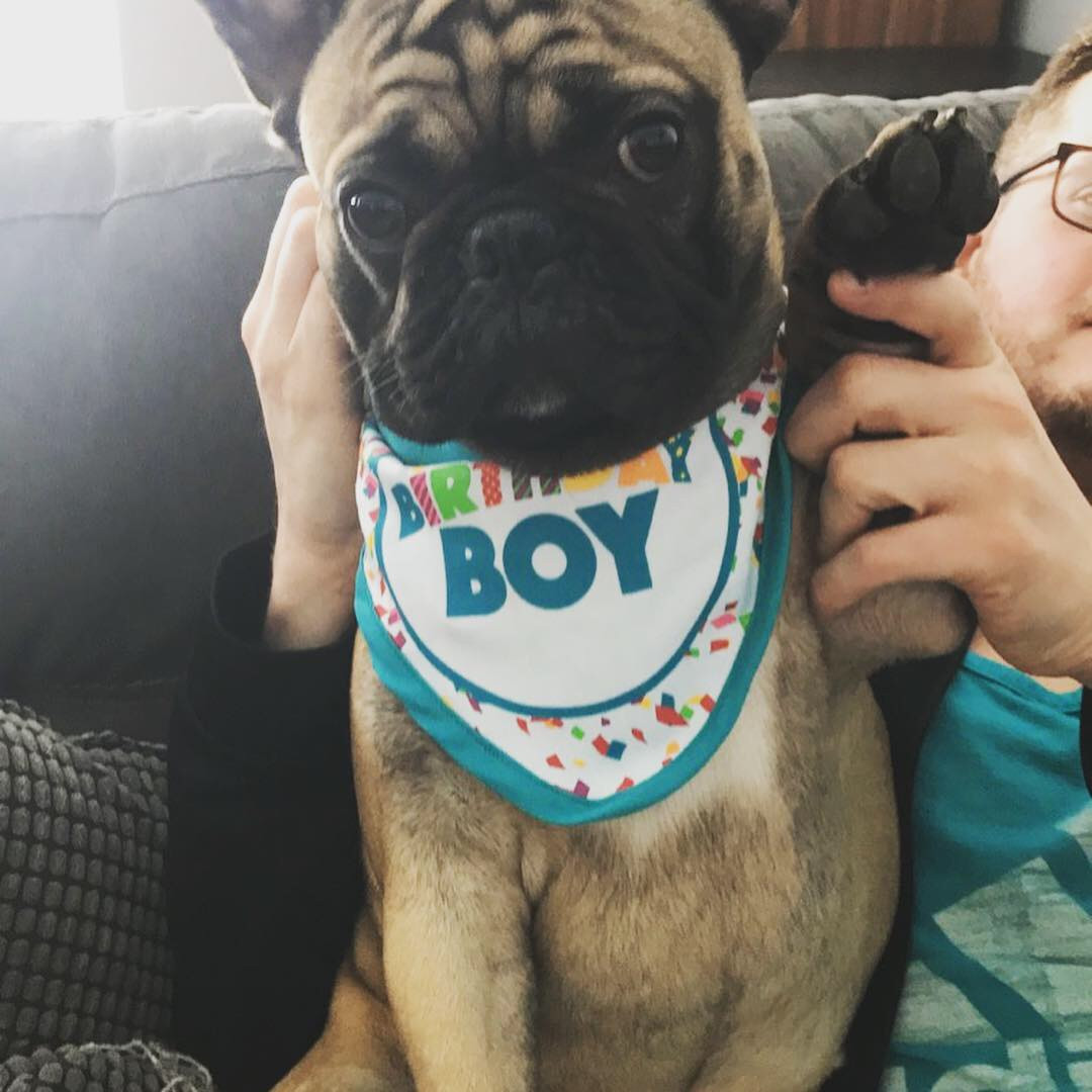 Bruno is always a fan favorite when we have guests over. His sweet wrinkled face and little head tilts steal everyone’s heart. He is everyone’s best side kick who is just happy to be along for the ride whether it’s a car ride adventure with his sister, a workday with dad or snuggled up on the couch with mom. He’s sure to bring a smile to your face and make your day better even with those stinky farts!