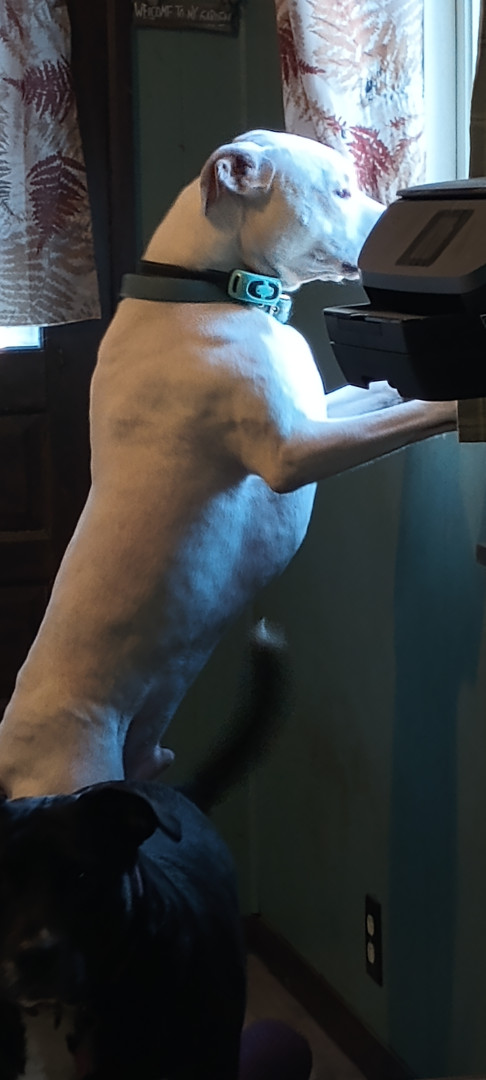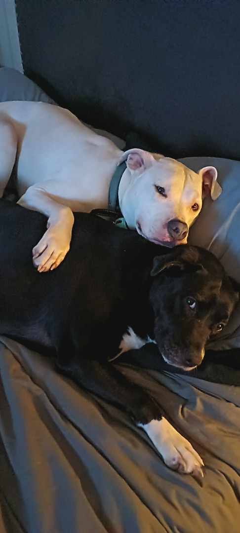 Bruno is my big white boy, pit/bull dog mix very strong very lovable. Oh my dogs are rescues