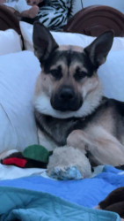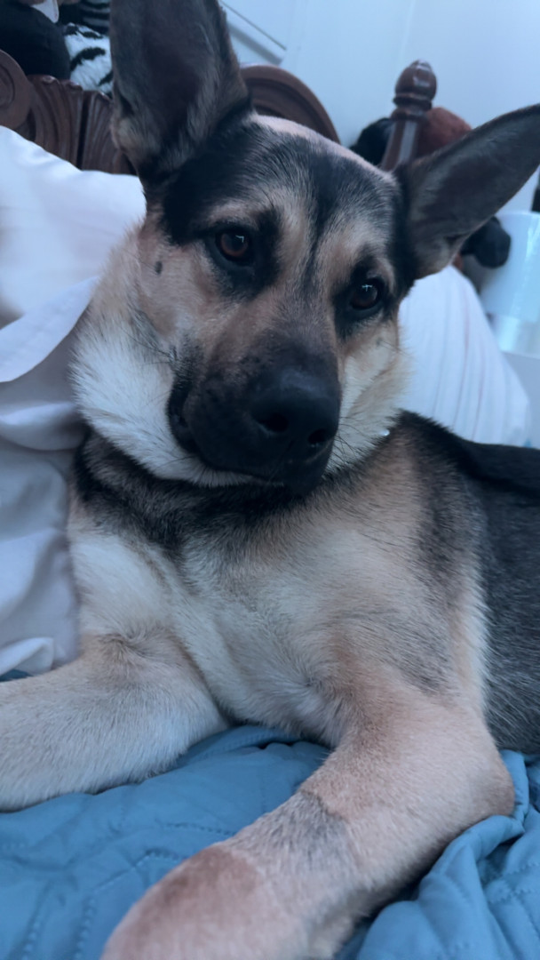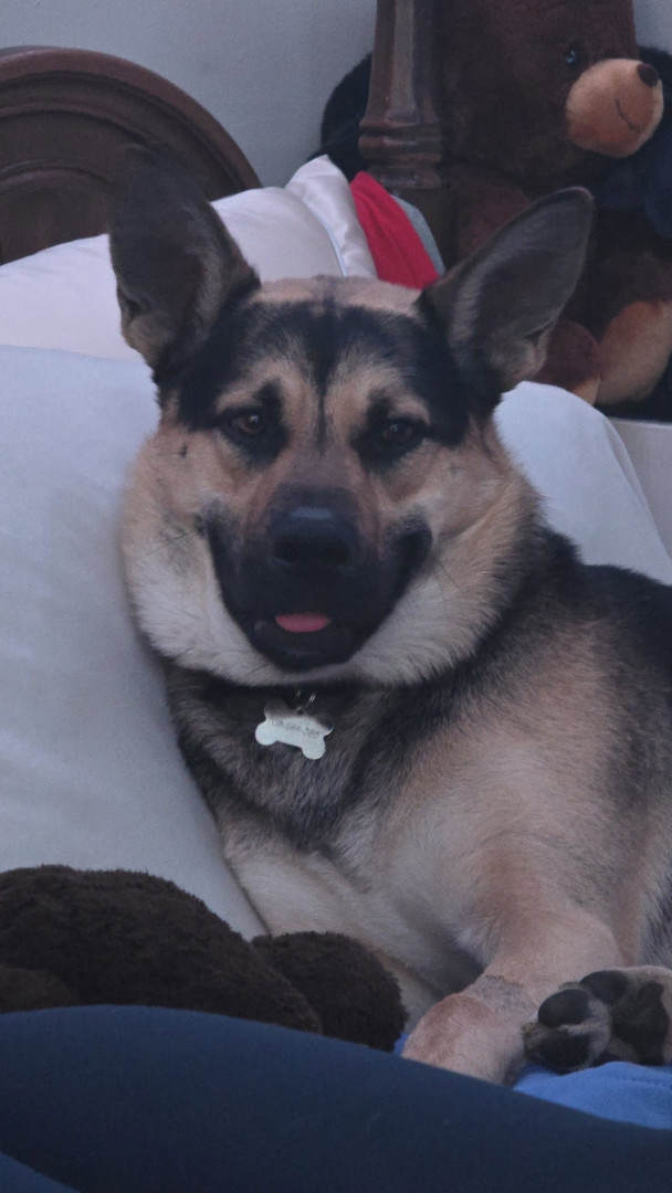 He loves people. When everyone comes by he is laying on his belly and ready for pets. He loves to get Zoomies around the yard and wag.