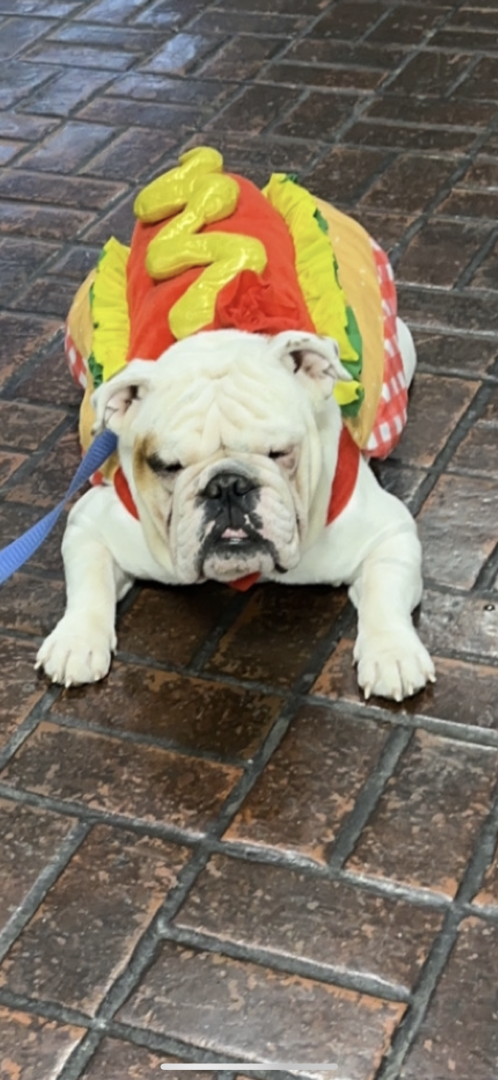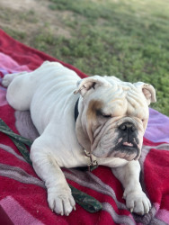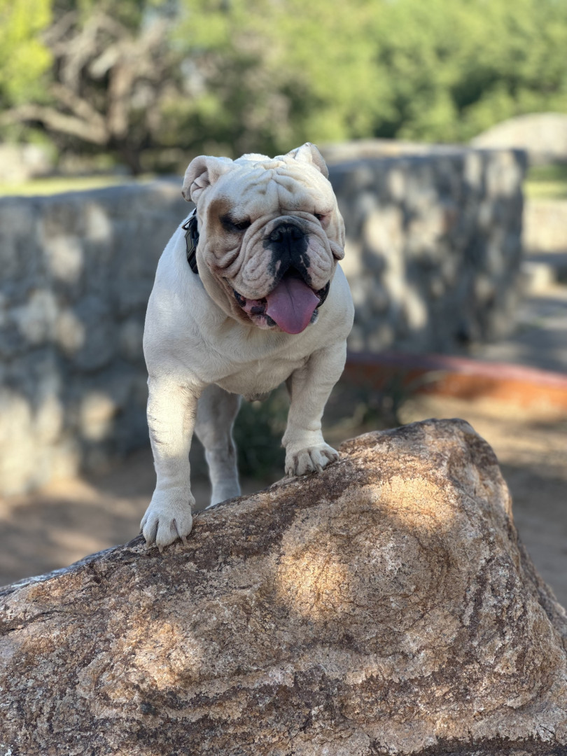 I don’t think he has one if anything like other bulldogs is eating and sleeping. He is learning to ride a skateboard. Definitely took over our bed and pillows.