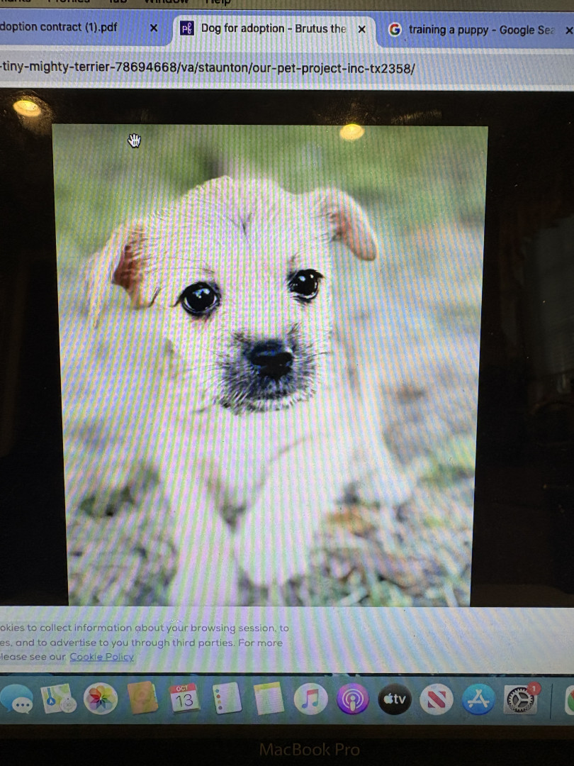 The tiny, mighty terrier, Brutus. Born August 19, 2025. We found him through Petfinders. He is a cute scamp, and very lovable.