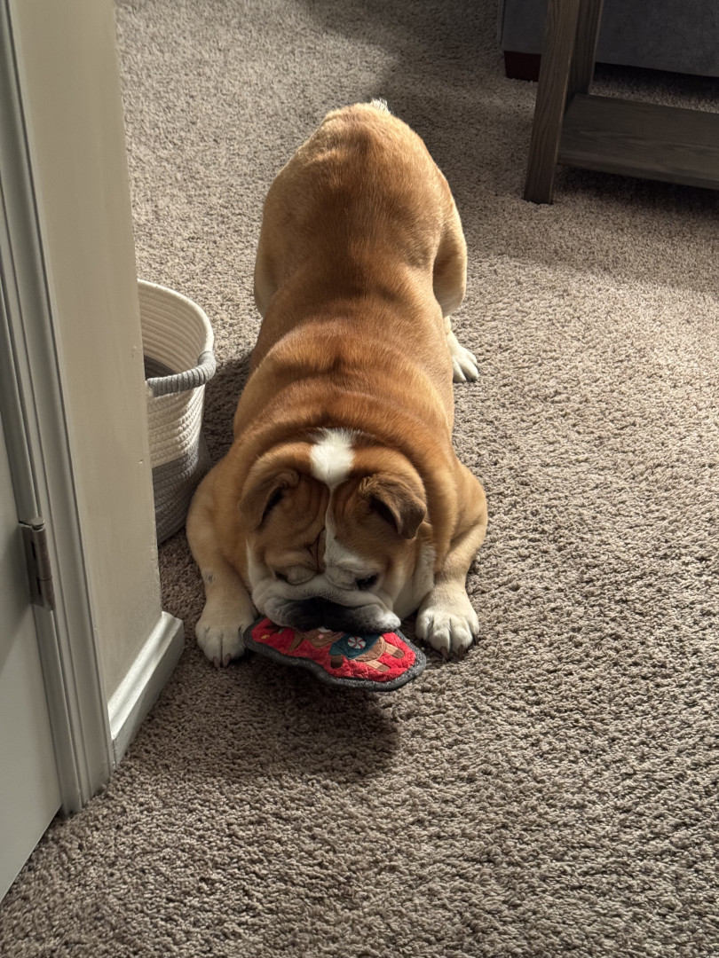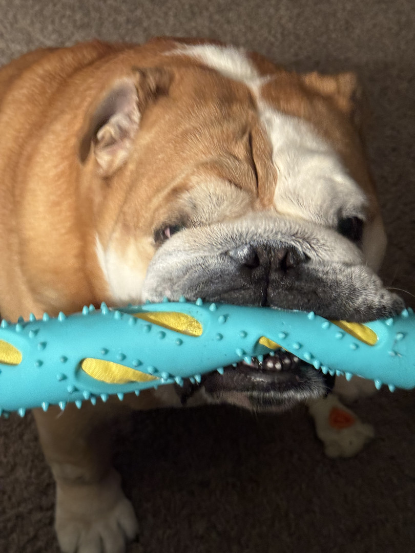 Receive Text UpdatesHe loves his bullibone. And he loves his peanut butter flavored cookies.