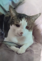 One day I was walking on the road ! He was laying in the middle of it crying! I picked him up ! Brought him home ! He only weighed 2 lbs ! Starving to death covered in fleas ! He is so thankful for that ! Even after 2 years ! He still is !! He is the love of my life !! He is a very smart baby !!