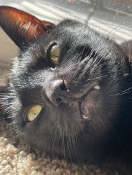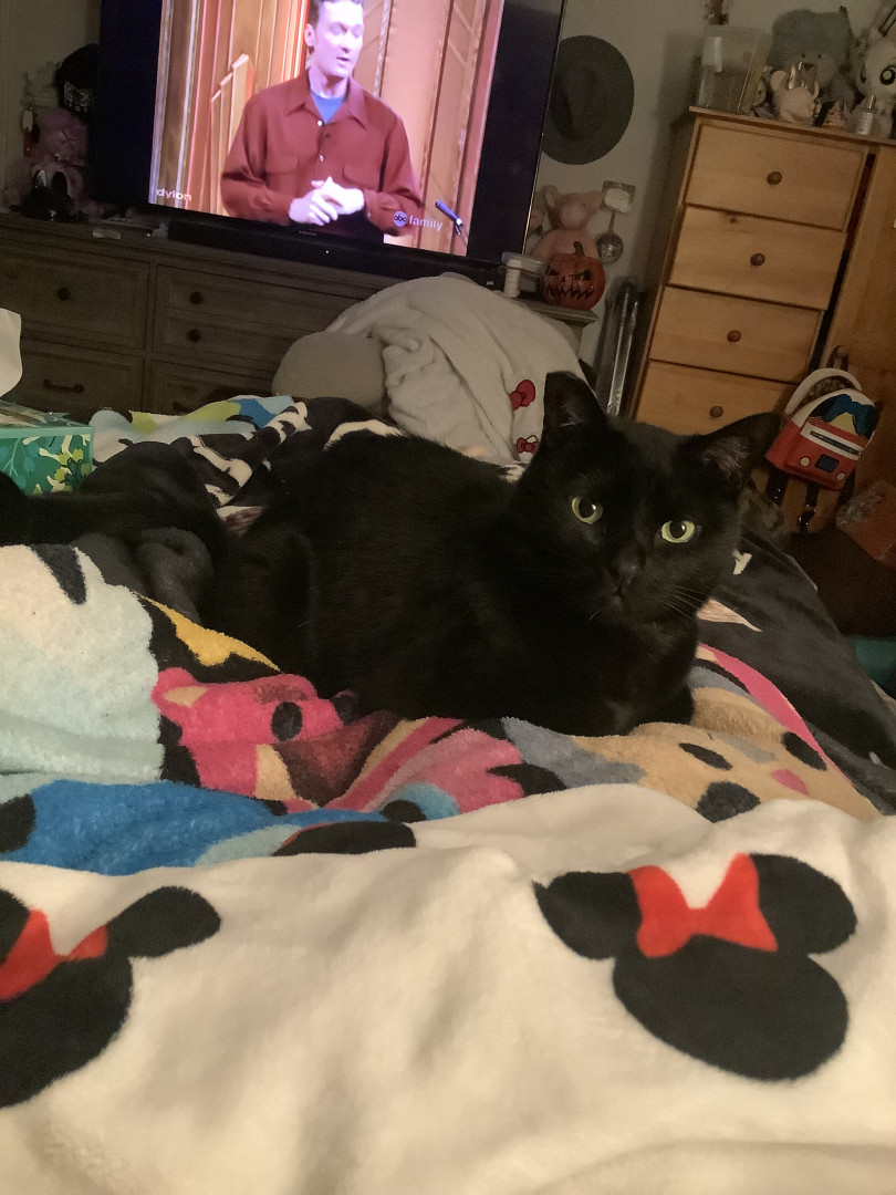Bubby is just beautiful. Everything about him. He just wants love and he cries following us around until we pick him up. He lays on the bed close to me purring asleep because he’s content. His life started in our backyard in yet another feral litter but my mom slowly started petting him when he would be eating and eventually she picked him up. After that he would sit near the screen door waiting to be held. After mom died he started coming in to be near my cat Binx.