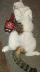 Bucky enjoys his squeaky mice filled with catnip and his go to treat is temptations dairy flavor