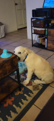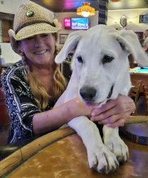 Buddy is 5 months old, lab/Pyrenees mix, and full of personality! Loves riding in the Jeep and stargazing! He's the light of my life!