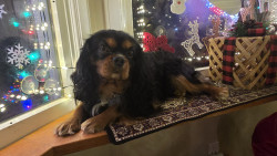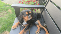 Buddy loves to hang out on the window sill. He loves to play with a tennis ball. His favorite friend is our other dog Leila, a lab retriver.