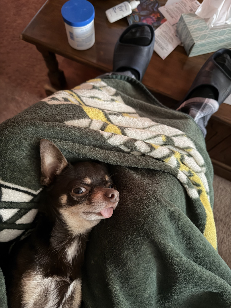 I love because his little tongue hangs out of his mouth because he has a overbite, and I didn’t know it when I bought the dog, but he’s the cutest little thing