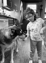 His ability to cheer up people and animals. How he knows when someone is sad or hurt and needs love and brings it.
