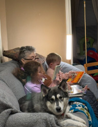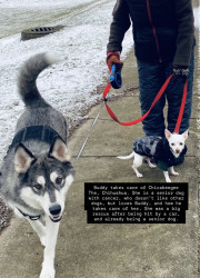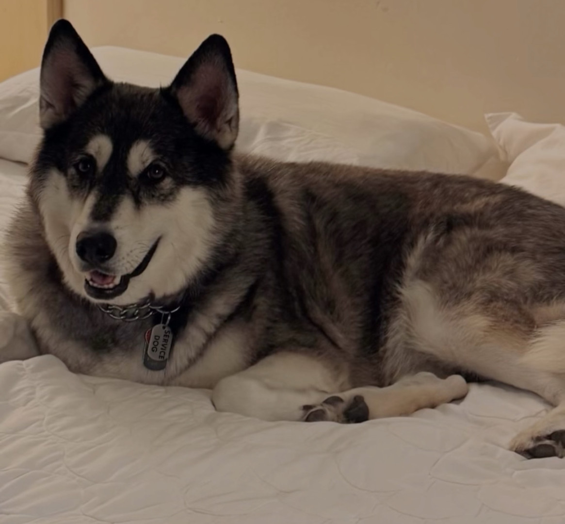 Buddy was rescued from a home where he couldn’t get proper care. He is now a service dog for ptsd and brings so much joy to so many people.