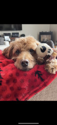 He is the kindest goldendoodle ever , gentle with kids , fun loving , loves his toys , loves going for walks and to the trailer. we love him
