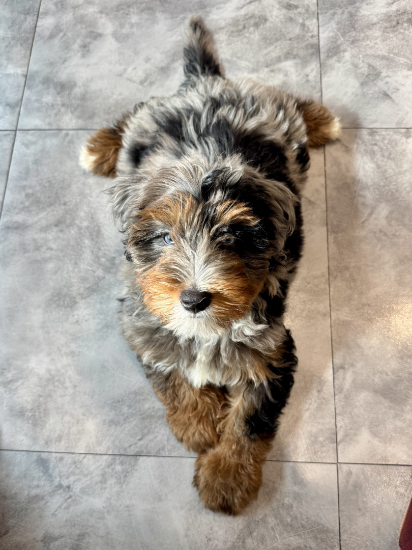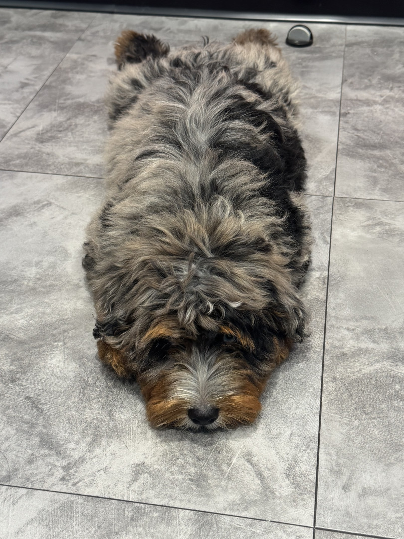 Blue-eyed Buddy, 1st team all-sploot. Not afraid to get his paws wet or eat a little sand!