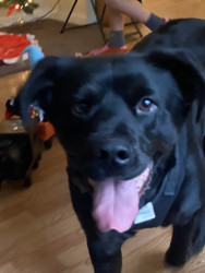 Buddy is a handsome English Black Lab. He has a very lovingly and friendly. He loves the kids in our family and his kitty sisters. ❤️