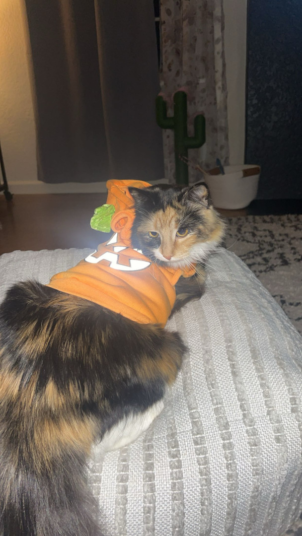 She’s just a sweetie. She’s beautiful, funny, loving and wild. She’s nothing like any cat I’ve met or had before. Her personality is something else!!