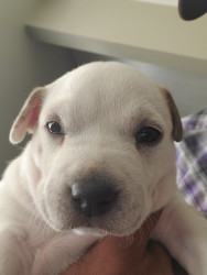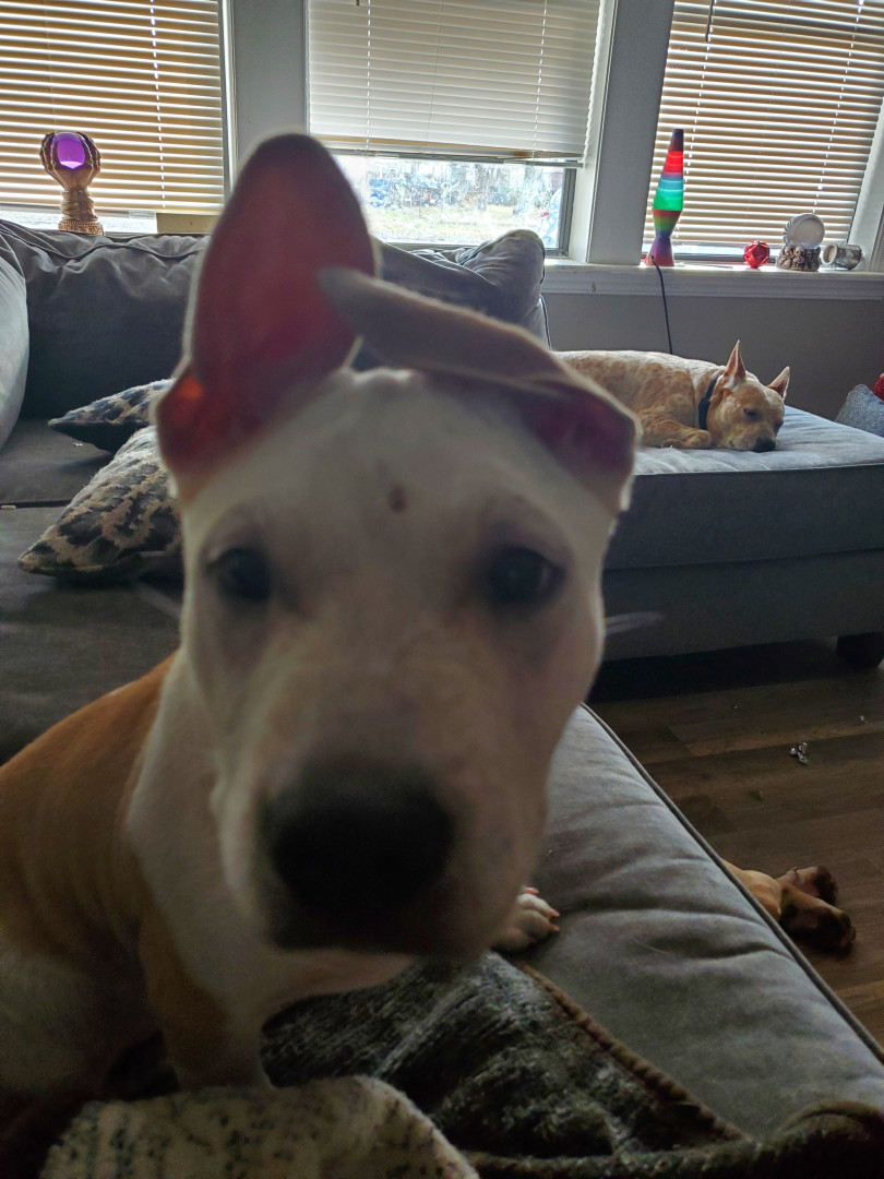Her patterns on her fur her dad is American bully and her mom is red Australian heeler so she very intelligent and loving