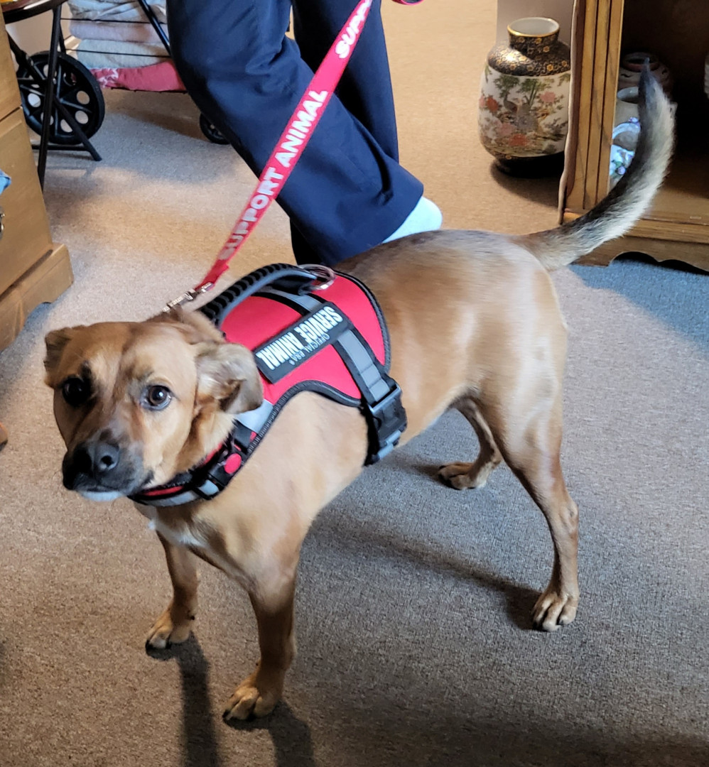 Service and emotional support who gives to all he sees. Loving and understanding. But is very protective of me..