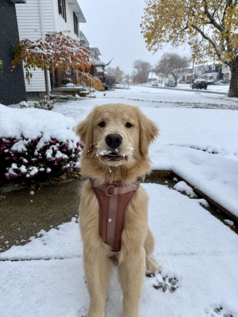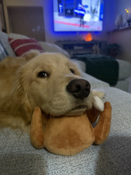 The cutest cuddly guy. Very photogenic and handsome. Loves all his squeaky toys and going on walks. Loves playing fetch in the snow