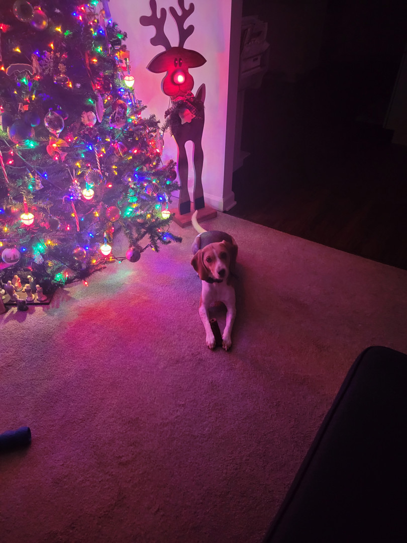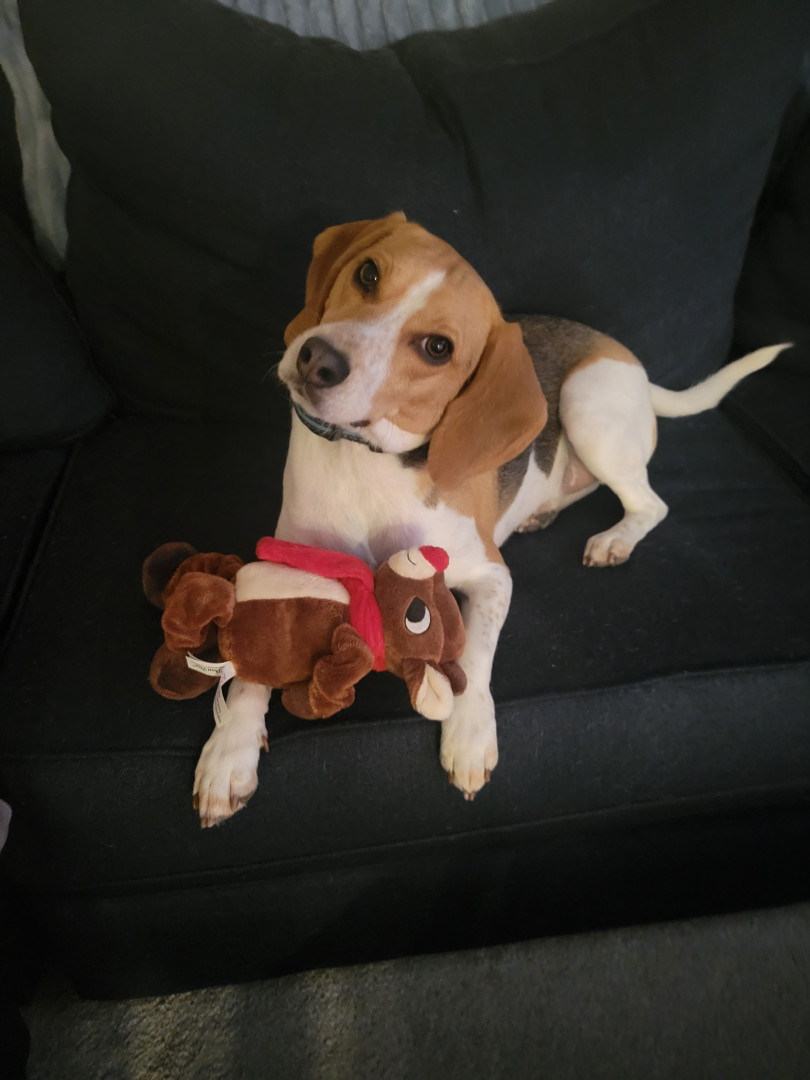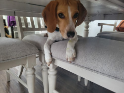Buster is a 3 year old rescue beagle. He has epilepsy and is on 4 different medications. He's a lover and his nose rules his life.