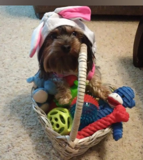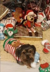 He has a ton of toys. His favorite is a squeaky toy that looks like a Reesey cup.