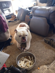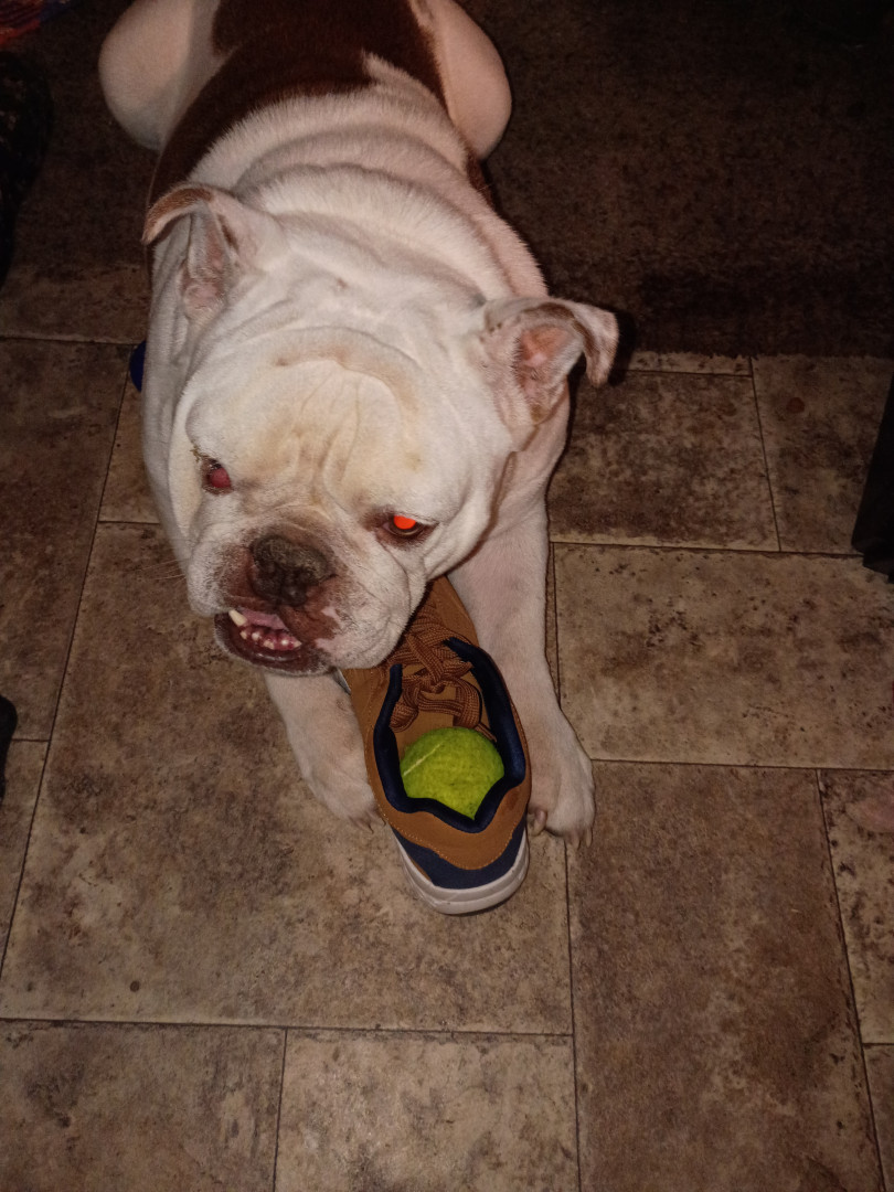 Learn MoreBecause buster has been on the streets for idk how long, his favorite thing to chew on is a water bottle. He loves to get the water out of the water bottles, and also loves to chew on ice cubes. He has a tennis ball, he likes to play with. It's almost as if he has never had toys before. He has so much fun playing with his toys. And neighbors like to bring him more.