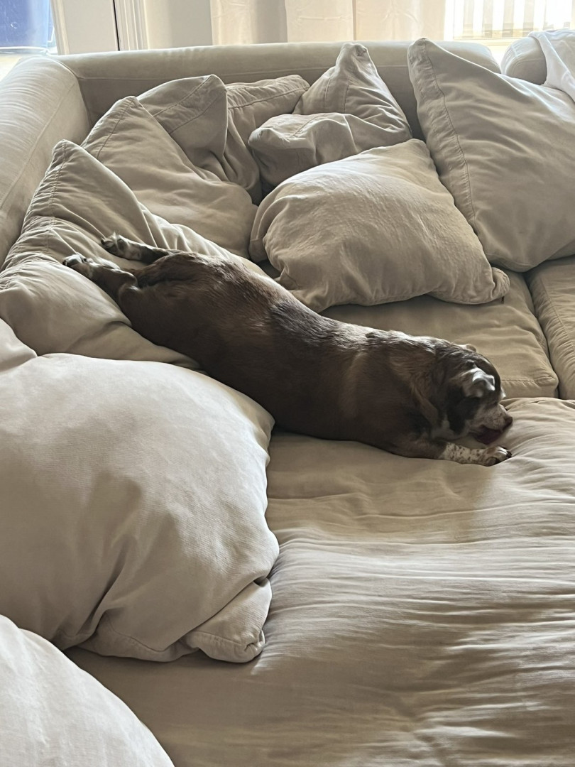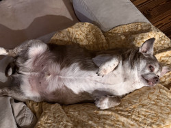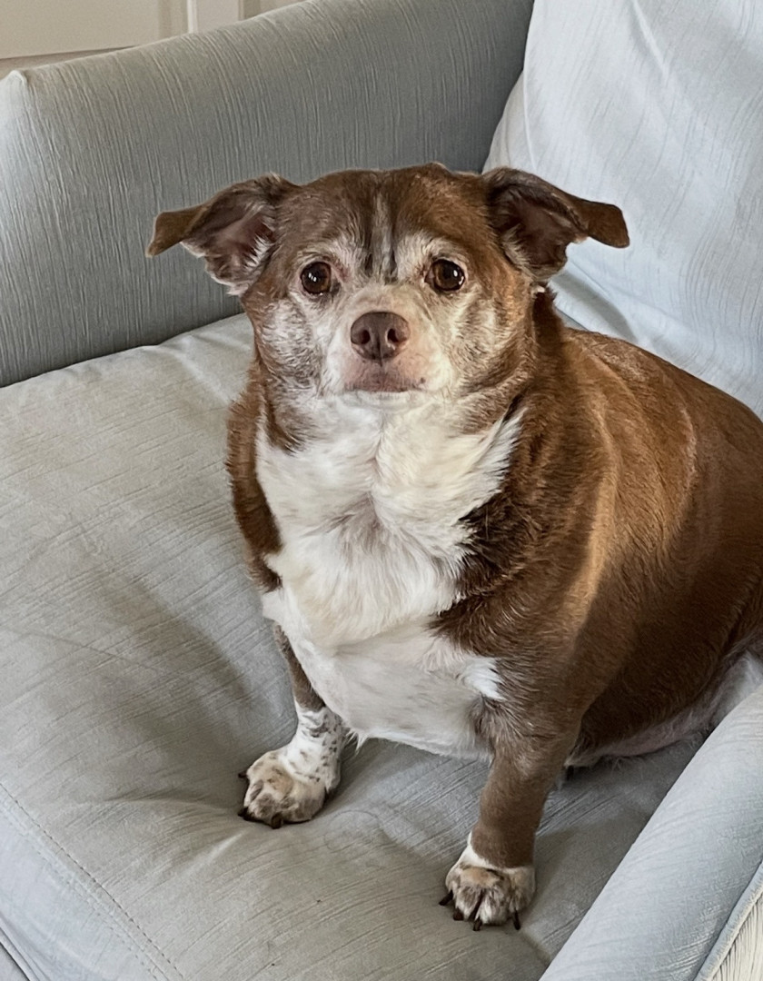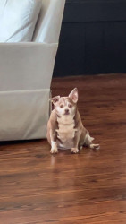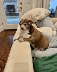 He is a chocolate Miniature Chihuahua. He loves to go on walks and runs to the door when I get home, for a treat.