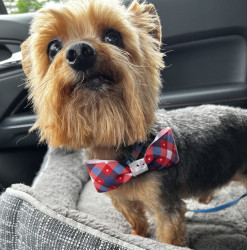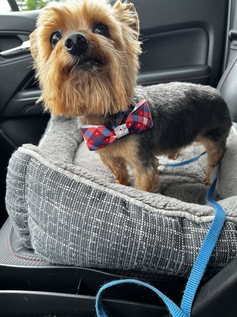 He is 14 years old and loves to go on walks. When it is time for him to eat he will get on the back of the couch and pat your head with his.