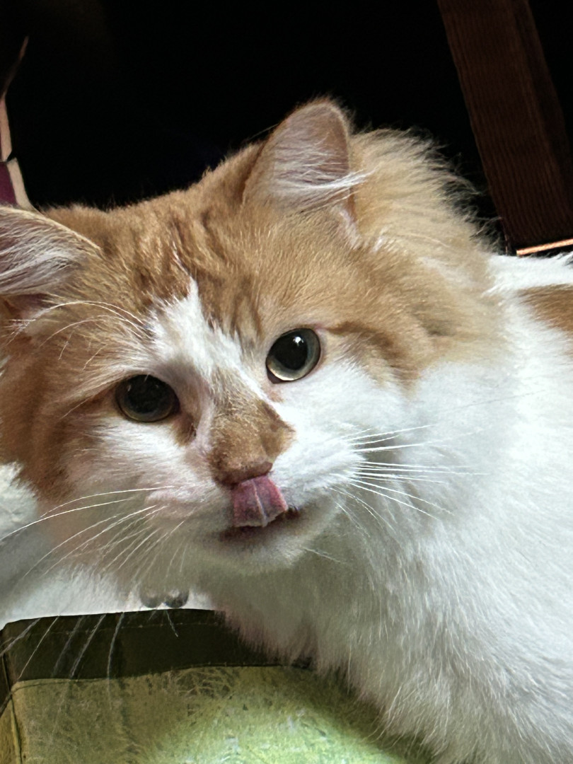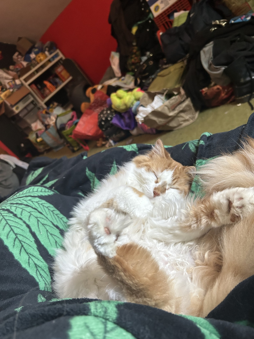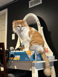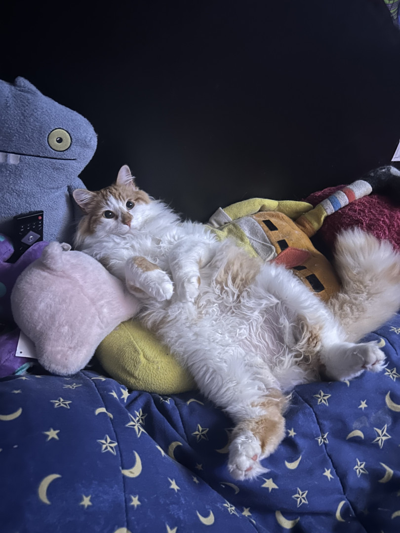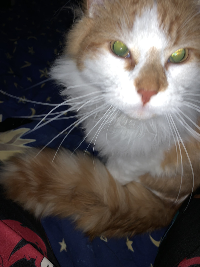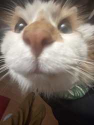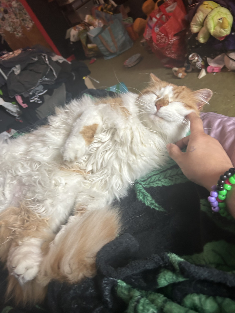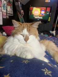 Super cuddly and clingy, just a ball of love!! He LOVES cardboard and plastic, very playful and silly kitty