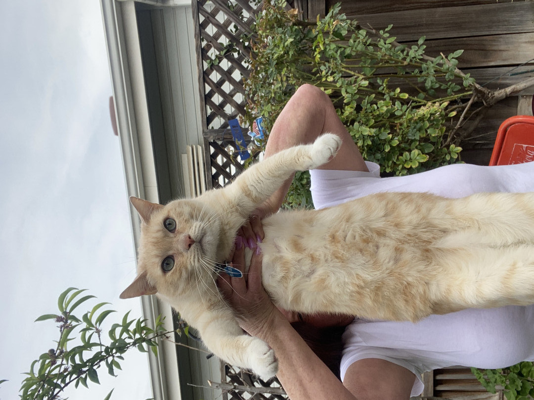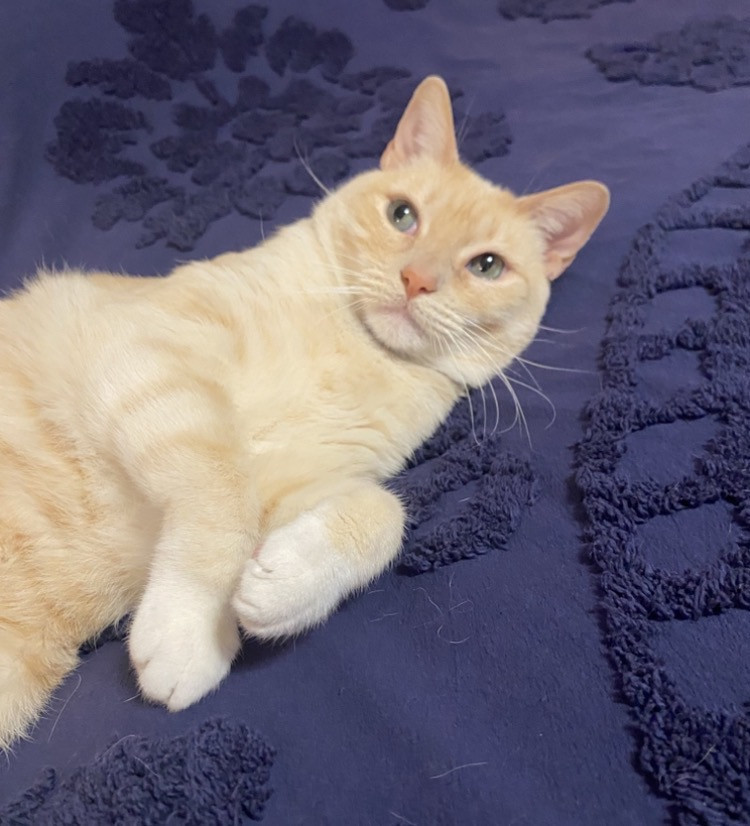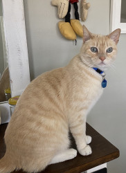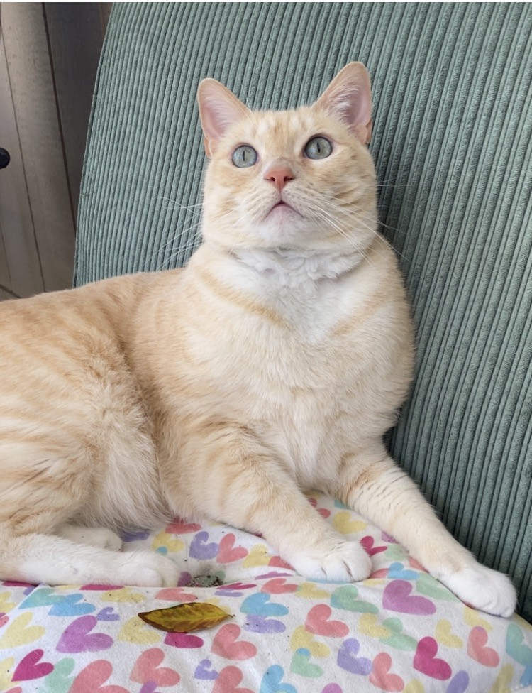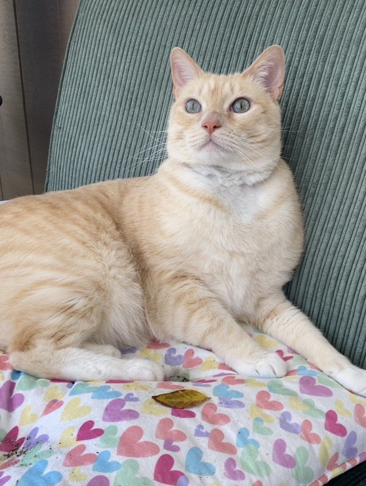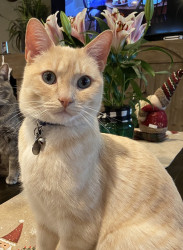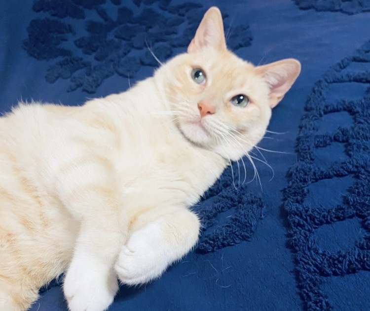 Butter’s doesn’t know why he’s special but everyone knows why he’s special when they have the pleasure of meeting him. Butters has a soft colored coat, kissed with flames and striking blue Siamese eyes.. He’s so handsome that he turns hands but what makes him truly unforgettable is how “ HE LOVES” Butter’ is very diligent, quiet and intelligent, and very expressive and prideful. He loves to bring his prey in and lay them by my bed whether it’s a mouse, bird or lizard. I’m alway so proud of him!