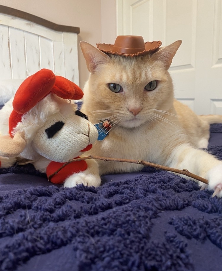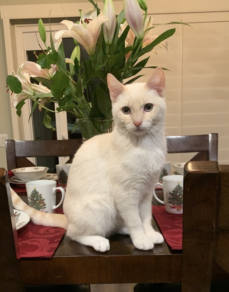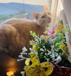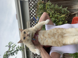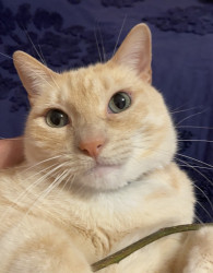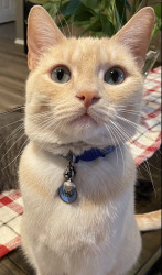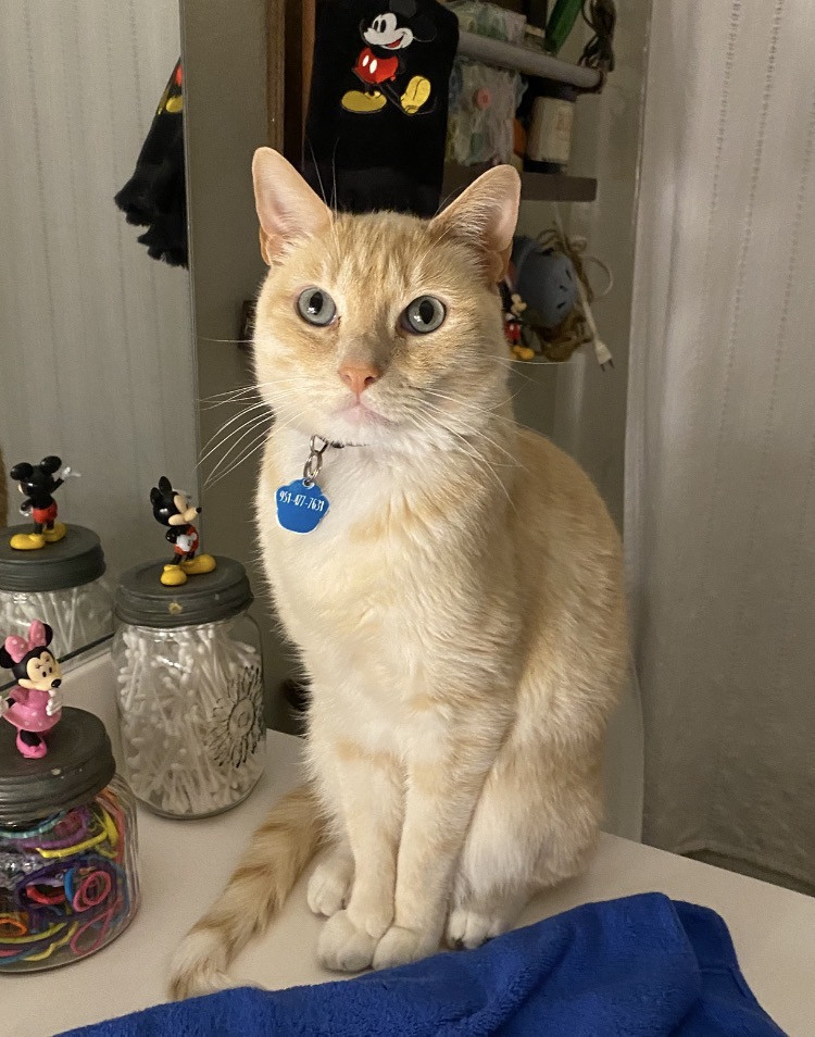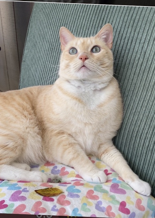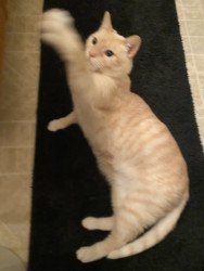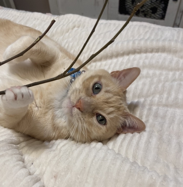 Butter’s doesn’t know why he’s special but everyone knows why he’s special when they have the pleasure of meeting him. Butters has a soft colored coat, kissed with flames and striking blue Siamese eyes.. He’s so handsome that he turns hands but what makes him truly unforgettable is how “ HE LOVES” Butter’ is very diligent, quiet and intelligent, and very expressive and prideful. He loves to bring his prey in and lay them by my bed whether it’s a mouse, bird or lizard. I’m alway so proud of him!