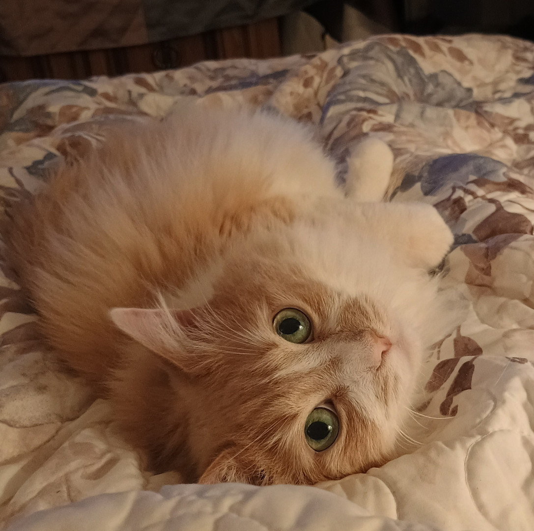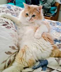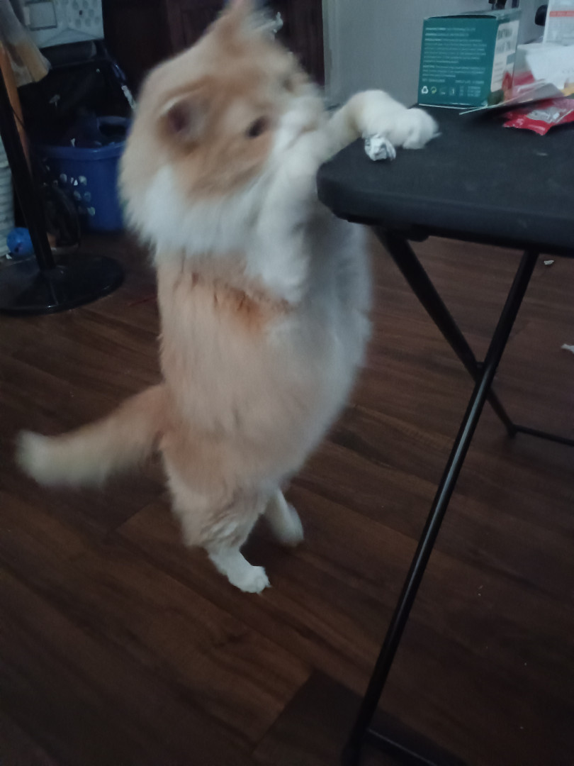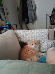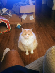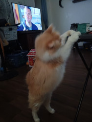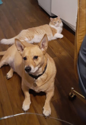 Butterscotch is a great pet he is very handsome he's outgoing sometimes he acts like a dog running to the door like he's going to bark.