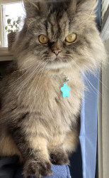 Buttons is my 8 year Persian boy. He loves snuggles, his favorite past time is eating and getting his water from the tub.