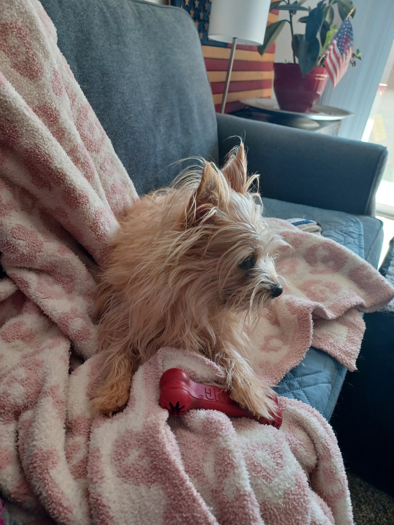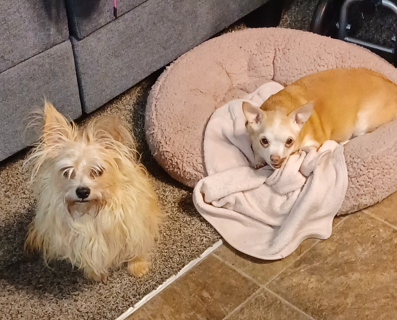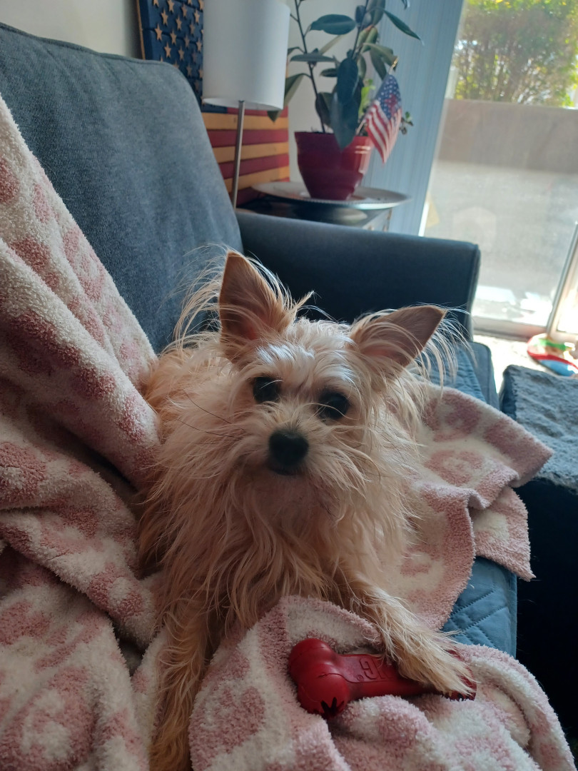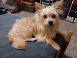 Buzz is a special little guy. I got him to be a therapy dog for my buddy Kevin who is a special needs person. He will snuggle up to sleep with Kevin. He snuggles with me when I am stressed. He just knows when you need a snuggle of love.