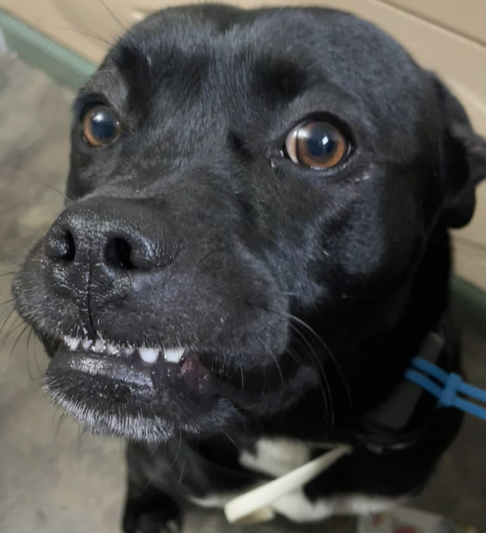 Under bite ..and his curly tail