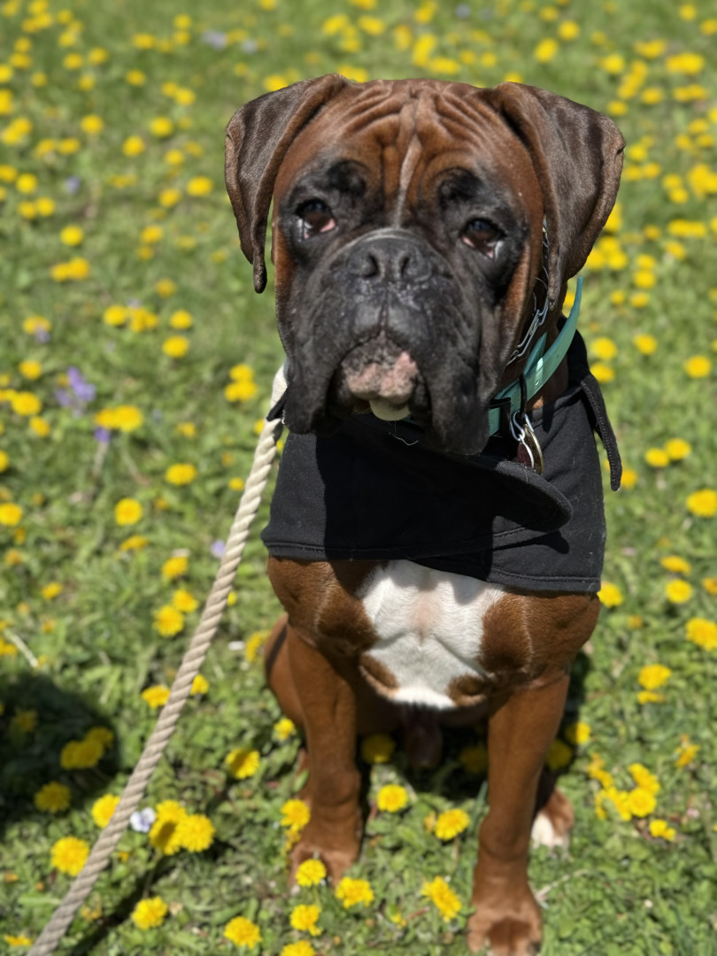 Goofy, high-energy 2-year-old Boxer! Cairo plays hard, loves everyone he meets, and ends each day snuggling his mom. Pure joy in fur form!